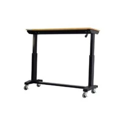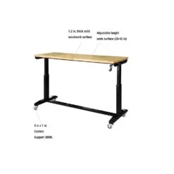 Husky 62 In. W X 24 In. D 2-Drawer Adjustable Height Black Workbench Table With Solid Wood Top