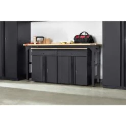 Husky 72 In. W X 24 In. D 2-Drawer Adjustable Height Black Workbench Table With Solid Wood Top