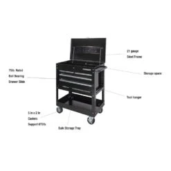 Husky Tool Storage 28 In. W Standard Duty Gloss Black Rolling Tool Utility Cart With Lift-Top