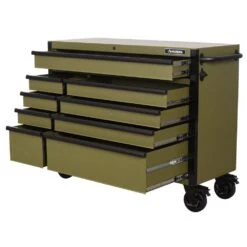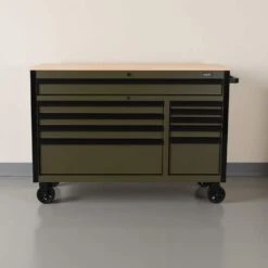 Husky Limited Edition 52 In. X 24.5 In. D 10-Drawer Army Green Mobile Workbench With Solid Wood Top