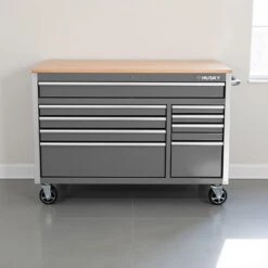 Husky Tool Storage 52 In. W X 25 In. D 10-Drawer Standard Duty Gloss Red Mobile Workbench Tool Chest