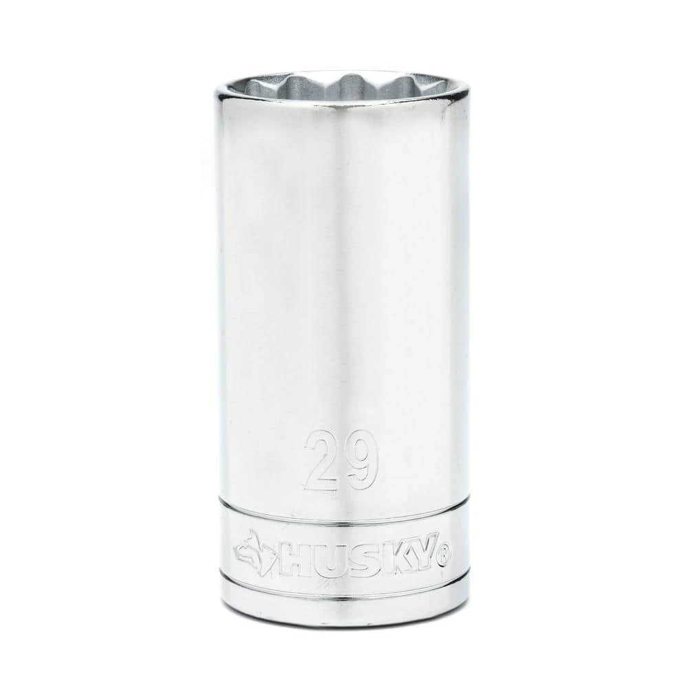 Husky 1/2 in. drive sockets are manufactured from chrome alloy steel and heat treated for added strength and wear protection, providing durability for a lifetime of hard use. Each socket features chamfered lead-ins for quick and easy placement onto fasteners every time. Their polished chrome finish resists rust and corrosion and easily wipes clean of oil and dirt.