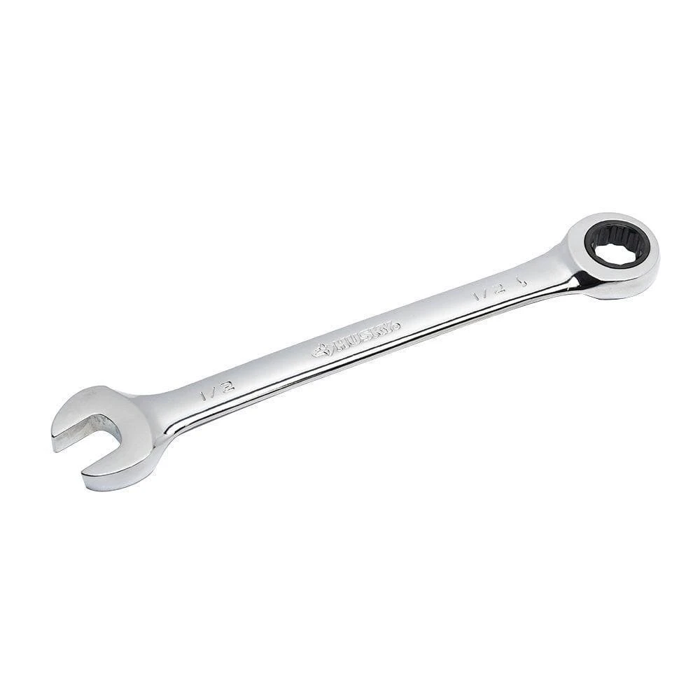 Husky’s ratcheting combination wrenches feature a 12-point, 72-tooth ratcheting box end that needs only 5ยฐ to engage fasteners. Each wrench is manufactured from chrome alloy steel and heat treated for added strength and wear protection, providing durability for a lifetime of hard use. Their polished chrome finish resists rust and corrosion and easily wipes clean of oil and dirt. Both the open and box end feature chamfered lead ins for quick and easy placement onto fasteners every time.
