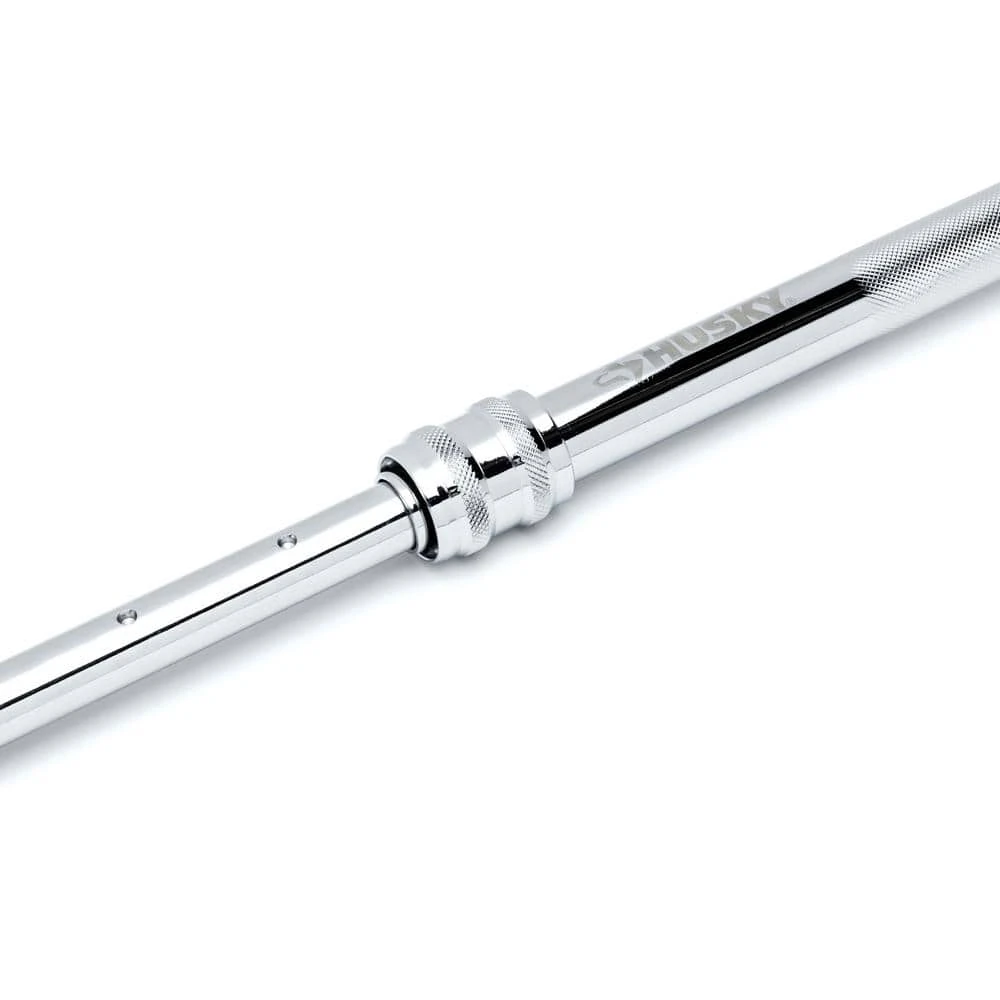 The Husky 1/2 in. Drive 18 in. to 24 in. Breaker Bar allows you to adjust the length from 18 in. to 24 in. depending on the users need. It features alloy steel construction for strength and durability, along with a chrome finish that provides resistance to corrosion. This breaker bar has a 180ยฐ swivel head and an ergonomically designed handle.