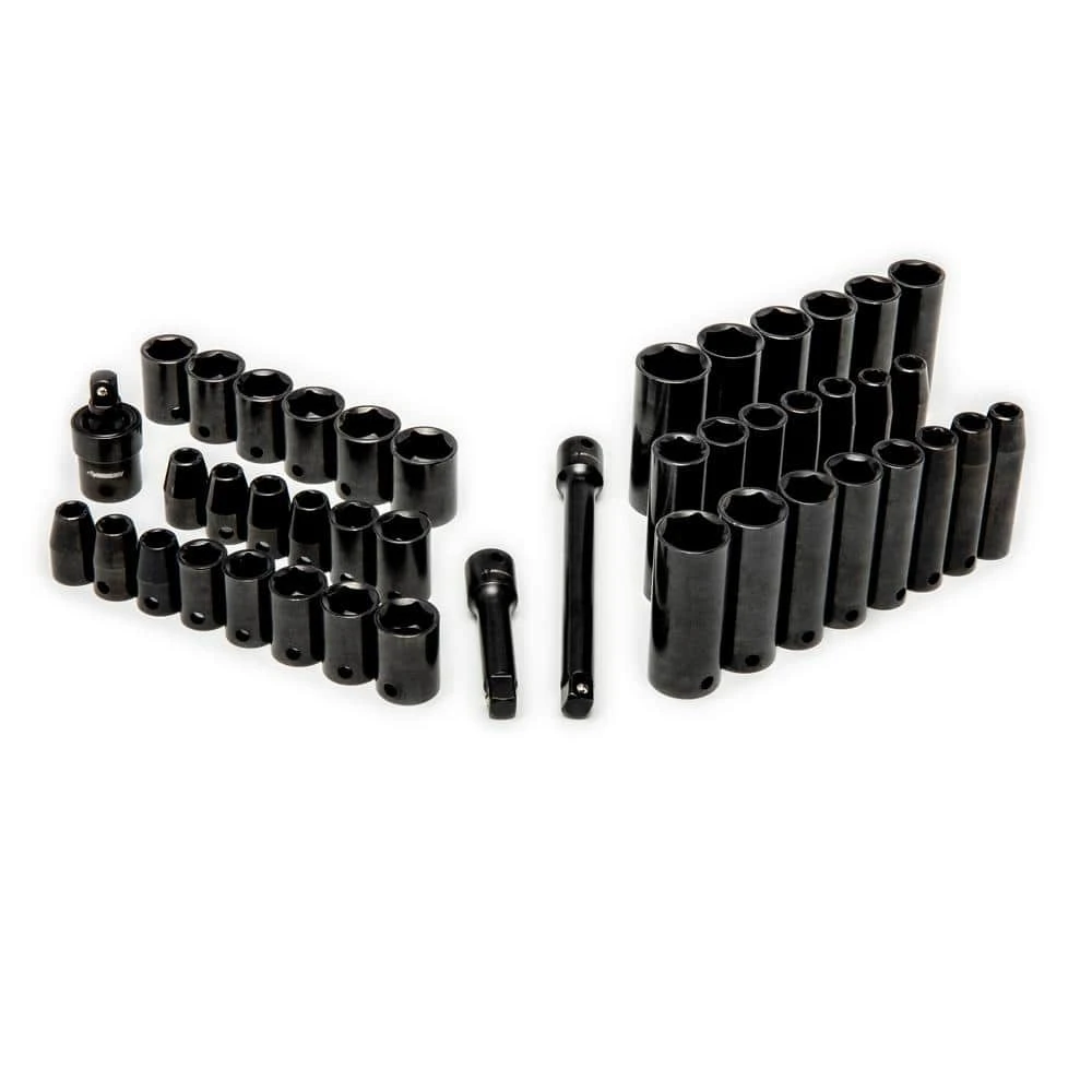 - Drive tools included: (3) quick-release 72-tooth ratchets – 1/4 in., 3/8 in. and 1/2 in. drive, (2) flex-head 72-tooth ratchets – 3/8 in. and 1/2 in. drive, (2) palm ratchets – 1/4 in. and 3/8 in. drive, (3) breaker bars, (1) T-handle, (1) bit driver, (1) spinner handle