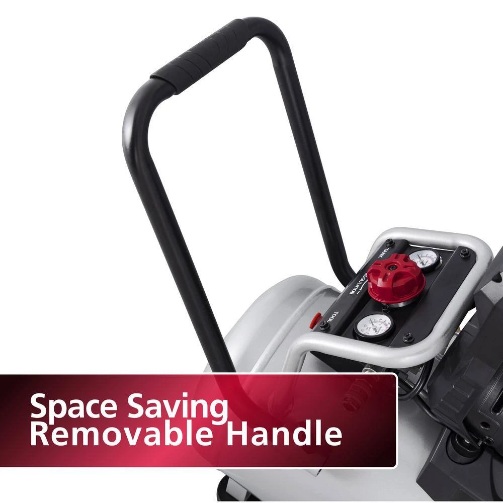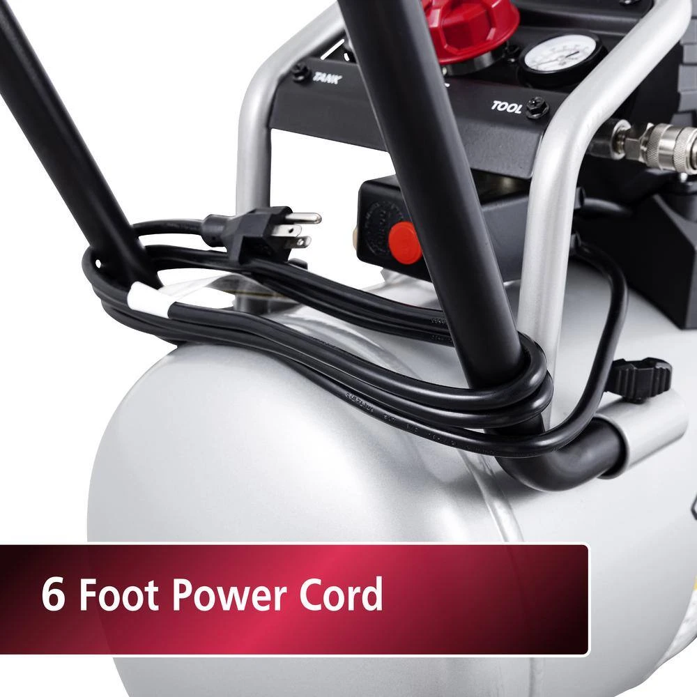 Introducing the Husky 10 Gal. 175 MAX PSI Quiet Hotdog Air Compressor – the powerhouse your projects have been waiting for. Engineered with precision and power, this compressor is designed to elevate your workmanship to new heights. Let’s dive into what makes this compressor a game-changer: Powerful Performance: with a robust 1.6 HP motor and a 10-Gal. steel tank, the Husky compressor delivers consistent and reliable performance. Maximum Pressure, Minimal Noise: Experience the best of both worlds with an impressive 175 MAX psi, coupled with remarkably low noise levels of just 70 decibels. Efficient Operation: Equipped with a 5.5 SCFM at 40 and 4.5 SCFM at 90, this compressor provides ample airflow for a variety of pneumatic tools. Precision Monitoring: Stay in control with dual gauges that accurately display both tank and tool pressure. Built for Convenience: Featuring a single quick coupler, air pressure regulator and a removable handle. Stability and Mobility: Say goodbye to wobbles and shakes, thanks to rubber feet that reduce vibration during operation. Plus, large rubber wheels make transportation a breeze. Durable and Reliable: Crafted from high-quality materials and engineered for durability, the Husky compressor is built to withstand the rigors of daily use. Easy Maintenance: Simplify maintenance tasks with a convenient air tank drain valve, allowing you to keep your compressor in top condition with minimal effort.