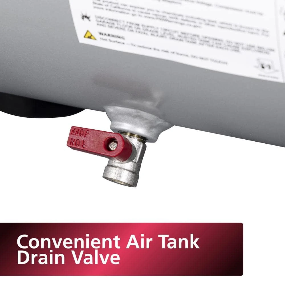 - Convenient air tank drain valve for easy maintenance