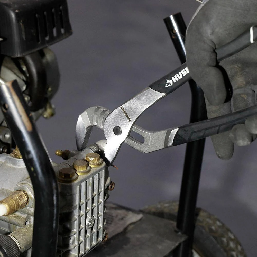 The Husky quick adjusting groove joint pliers are easier to adjust for the perfect fit. At the touch of a summary, the jaws can be moved to quickly fit a fastener without having to guess which the appropriate groove to use for size is. The multi-groove system has 2X the locking positions for a better fit than ordinary groove joint pliers. Rubberized handles provide for a comfortable, non-slip grip.