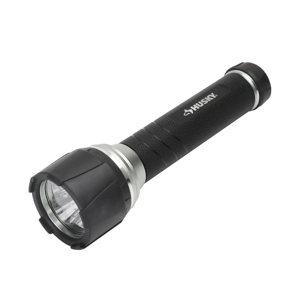 The Husky 1000 Lumens Unbreakable Flashlight is built to tolerate abusive treatment. Drop-tested from 30 ft. and waterproof up to 1 m, this flashlight is capable of withstanding the most demanding work conditions. The premium LED lighting offers 3-modes high, low and strobe powered by 6-pieces Energizer AA alkaline batteries (included). The ergonomically designed aluminum body features a rubber coating for superb comfort and grip.