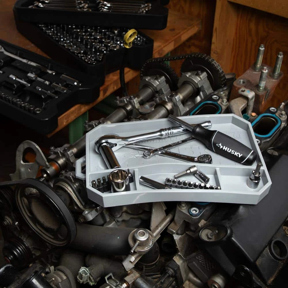 Stay organized with the Husky silicone tool mat. Non-slip and non-marking silicone provides a great base to place tools while working with no fear of damaging the work place. Soft design conforms to the surface underneath and can provide tool storage on uneven work places.