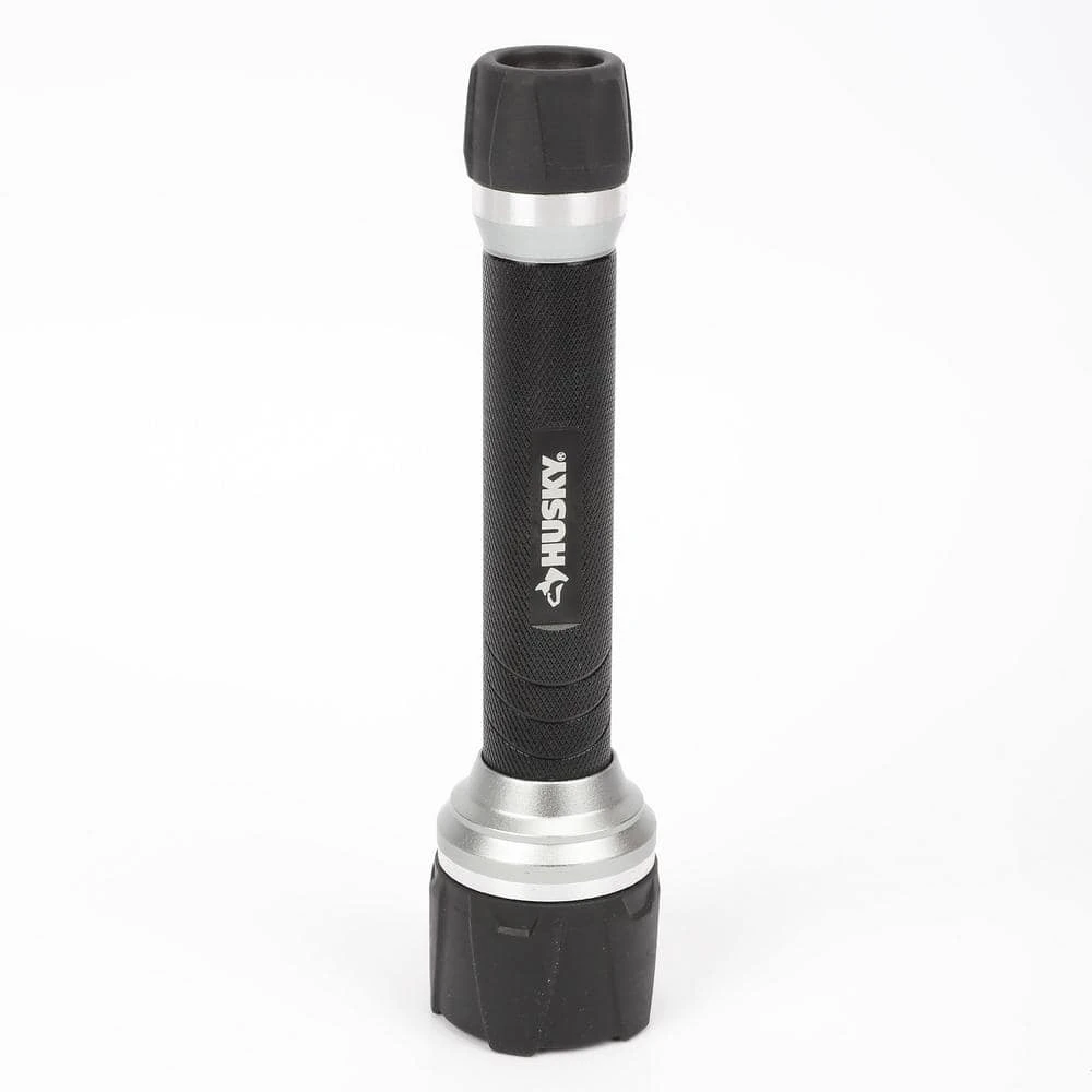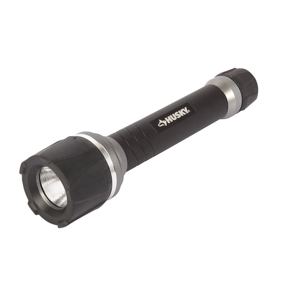 The Husky 120 Lumens unbreakable Flashlight features durable aluminum. The light provides 3 modes of operation, high, low and strobe functions. Drop test rated from 30 ft. and water-proof to 1 m. It is with super bright Cree LED and Energizer Alkaline battery, up to 120 Lumens and can operate for a maximum of 3-hours run time.