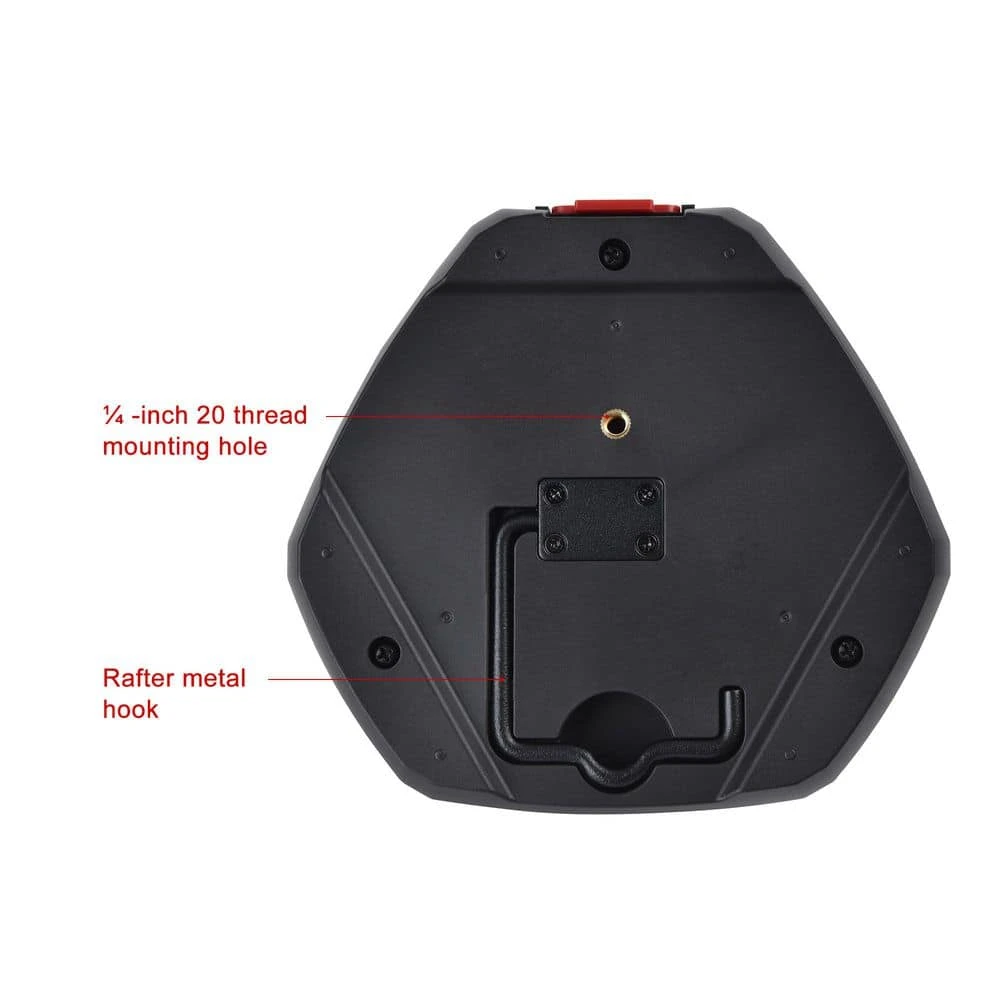- Multiple mounting options including integrated handle for portable, rafter metal hook for hanging and ยผ -inch 20 thread mounting hole fitting for tripod (sold separately)