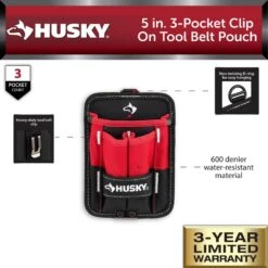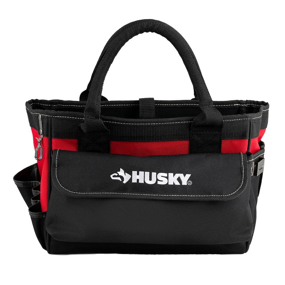 The Husky 14 in. Open Tool Bag is the perfect open-style tool tote for easy and secure transportation of all your favorite tools and accessories. This tool bag features padded webbing handles for increased comfort and long-lasting use. The 600D water-resistant material is ideal for all weather conditions. This tool tote will keep your tools and accessories safe and secure while providing a functional structure for easy access while on the job. A metal tape measure clip securely stores your tape measure while you work. This tool bag can couple perfectly with your other Husky tool storage pieces. Be sure to add this Husky Tool Bag to your collection today.