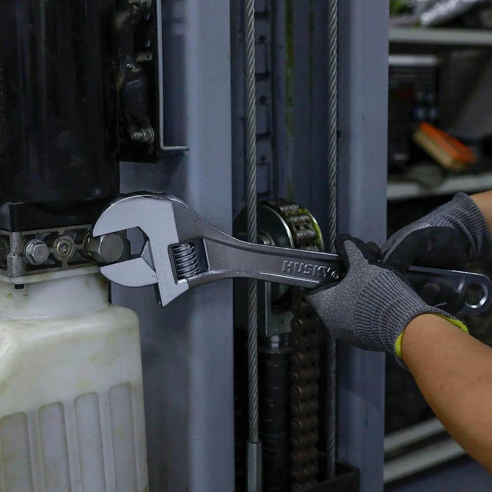 Husky Adjustable Wrenches feature a durable, comfortable handle. A large knurl allows for easy adjustment and a tight-fitting hex jaw design reduces slippage and tightly grips the fastener for solid, secure operation. The corrosion-resistant chrome finish helps prevent rust. Made of high quality steel with heat-treatment for durable performance.