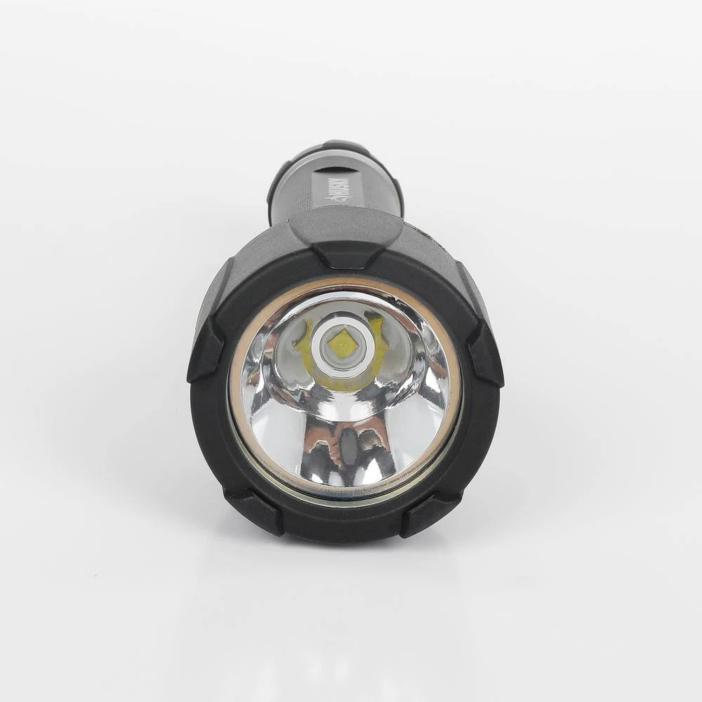 The Husky 1500 Lumens Unbreakable Flashlight is built to tolerate abusive treatment. Drop-tested from 30 ft. and waterproof up to 1 m, this flashlight is capable of withstanding the most demanding work conditions. The premium LED lighting offers 3-modes high, low and strobe powered by 6-pieces Energizer AA alkaline batteries (included). The ergonomically designed aluminum body features a rubber coating for superb comfort and grip.