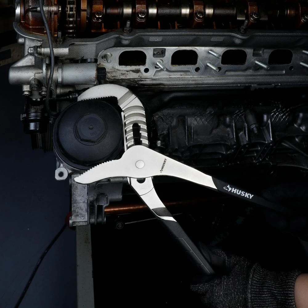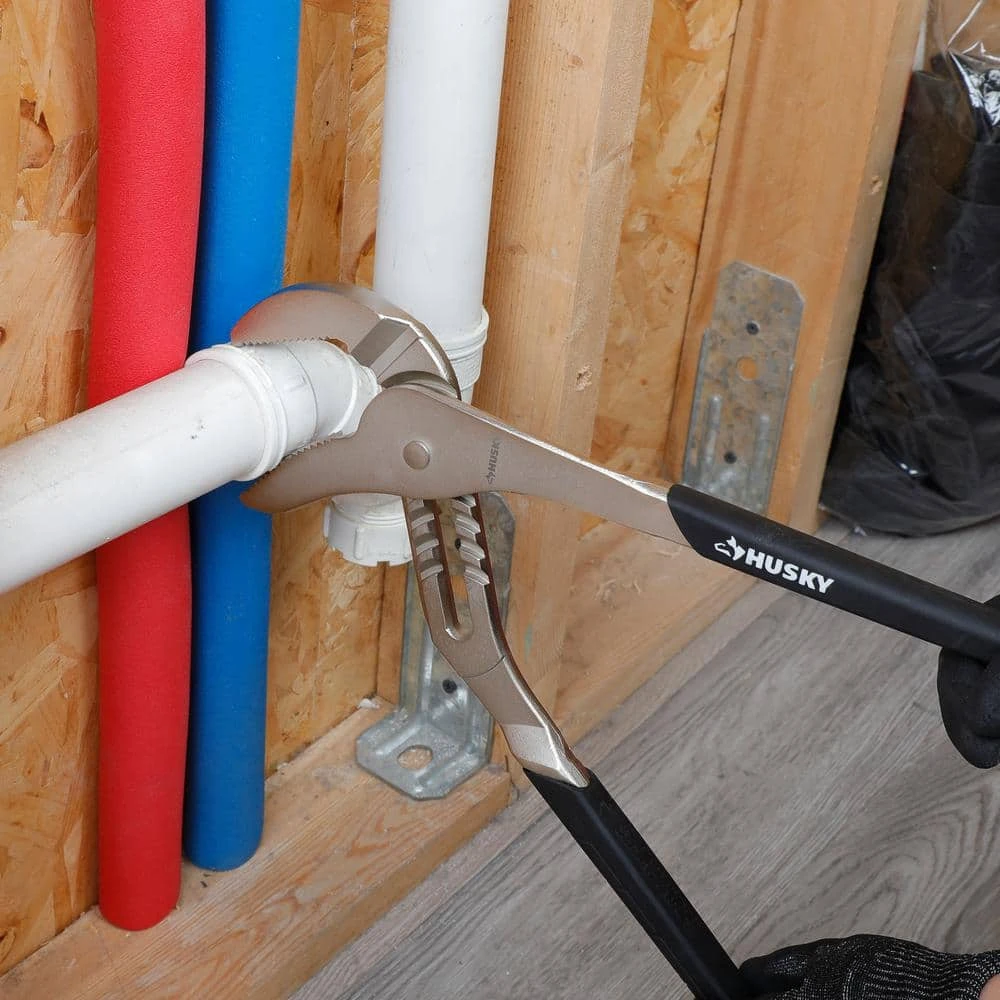The 16 in. Husky Groove Joint Pliers also known as tongue and groove pliers are often used for gripping irregularly shaped objects. They can also be used for clamping materials. They are also commonly used for turning and holding nuts and bolts. An advantage to this design of pliers is that it can adjust to a number of sizes without the distance in the handle growing wider. These pliers generally have long handles for increased leverage.