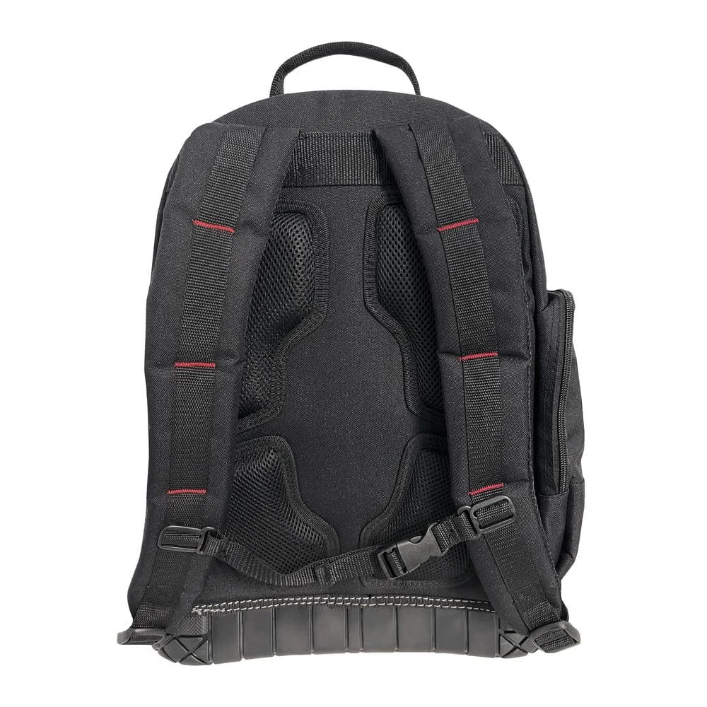The Husky 16 in. Tool Backpack helps you stay organized and efficient with easy access to your tools on-the-go. Includes 3 zippered compartments, 2 external mesh pockets and 19 internal pockets for organizing your tools. The waterproof molded base provides stability to keep the bag upright for easy access and the 600D water-resistant polyester fabric will provides long-term durability.