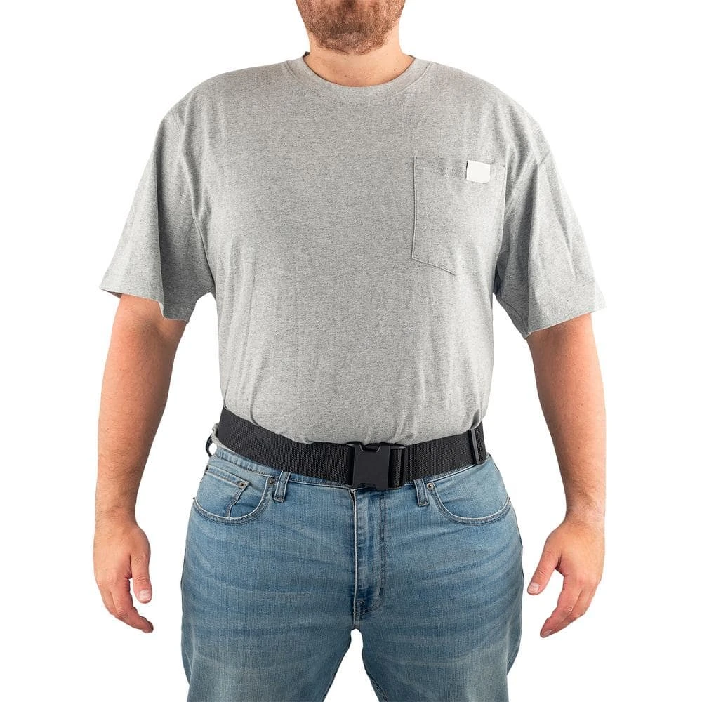 The Husky quick release 2 in. Work tool belt in black features heavy-duty poly web material for long life and is capable of holding accessories without tearing. This tool belt is compatible with all Husky tool pouches and is adjustable for waists 29 inches to 46 inches. The Husky black quick release tool belt is 2 in wide, making it compatible with most work pants belt loops. The quick-release buckle on the Husky work utility tool belt ensures you should easily remove the belt without trouble.