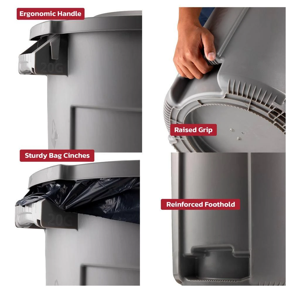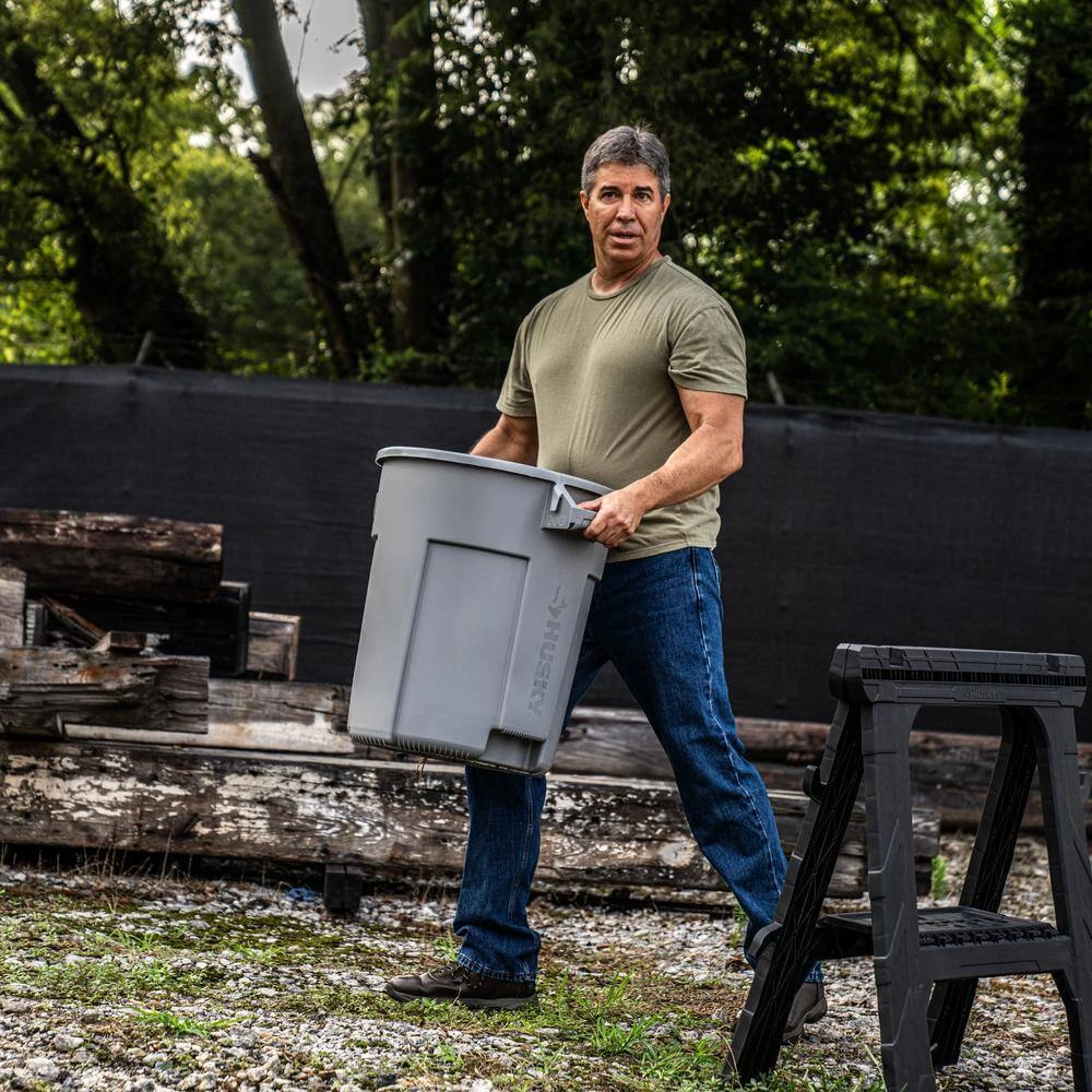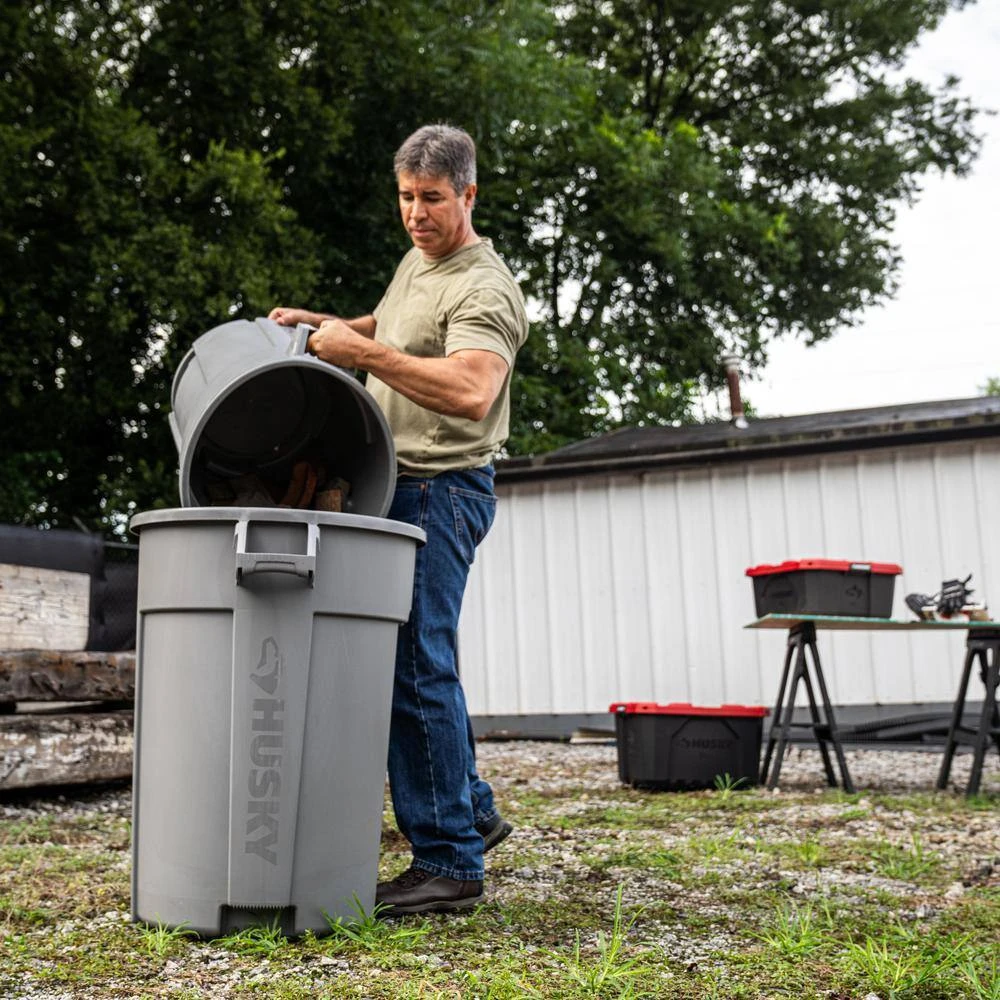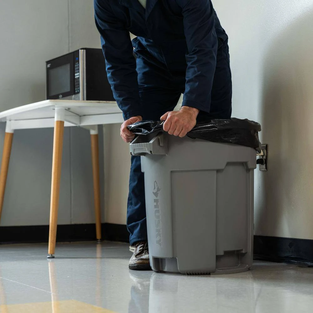 The Husky 20 Gal. trash can is engineered for maximum efficiency and durability even in the toughest environments. With its reinforced foothold and innovative venting channels, removing liners has never been easier. Designed for seamless integration with the trash can dolly for ease of movement, this trash can also features a raised lower grip area and an ergonomic handle with convenient bag cinches, making trash disposal a breeze. The domed lid ensures water runoff, while the cans’ ability to nest together maximizes storage efficiency. Emblazoned with bold Husky branding and high-polished feature callouts, including the gallon size, it combines functionality with style. Crafted from a high-quality proprietary resin material that boasts UV resistance, it’s built to withstand extreme conditions without fading, cracking or crushing. The rounded handles, reinforced for extra durability, facilitate easy lifting and moving, even under heavy loads. The reinforced base is specifically designed to endure being dragged over rough surfaces, significantly extending the can’s lifespan and overall durability. Additionally, contoured base handles and a rim enhanced with an integrated rib structure offer improved grip and ergonomics, reducing strain and boosting efficiency during emptying. This trash can doesn’t just hold waste; it’s a testament to Husky’s commitment to quality, designed to make trash management as convenient and reliable as possible.
