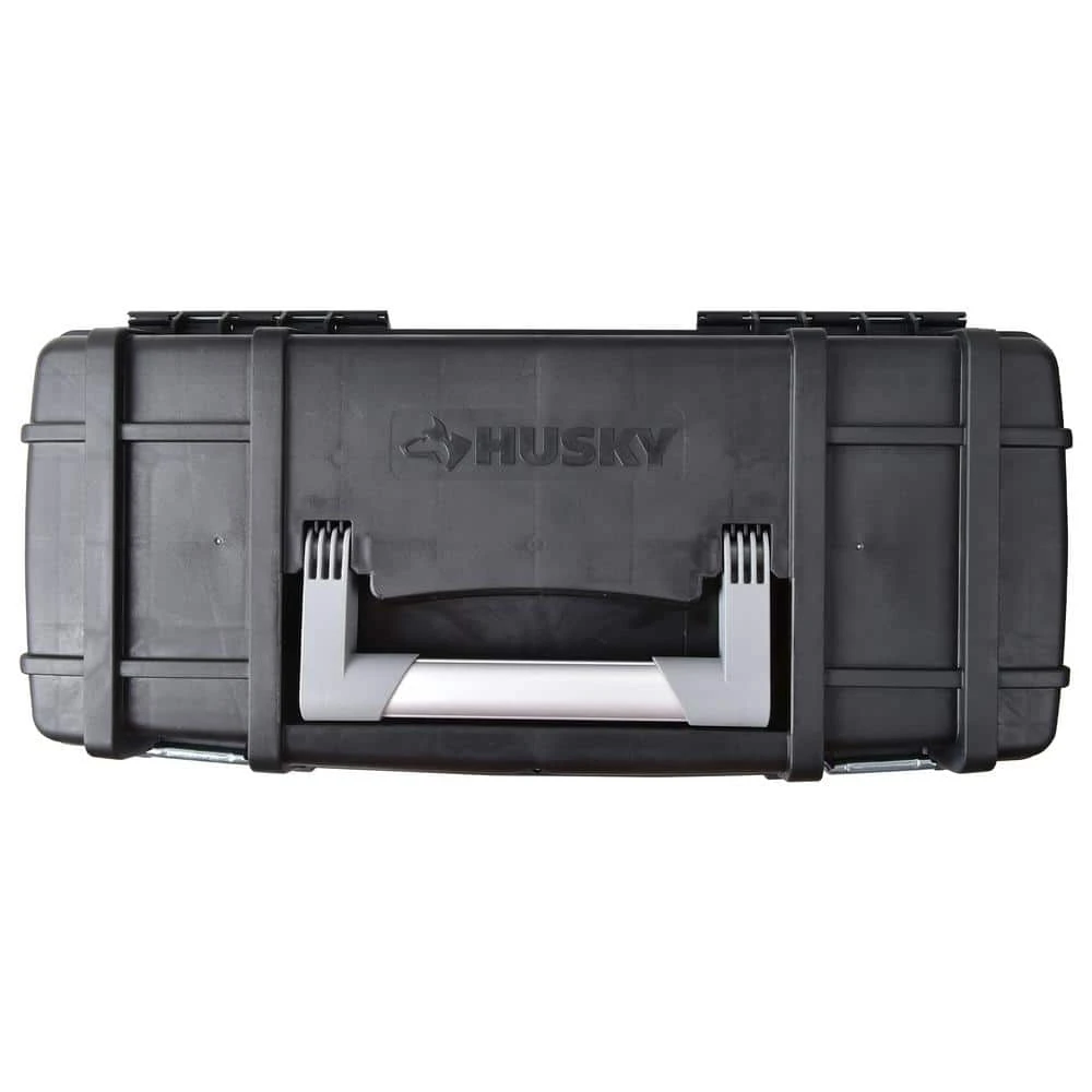 The Husky 24 in. Tool Box is constructed of durable polypropylene and features heavy-duty metal latches and a padlock eye for safe, secure tool storage. The large body box accommodates everything from power tools to small hand tools while the metal handle makes any load easy to carry. This tool box is perfect for everything from the home to the jobsite.