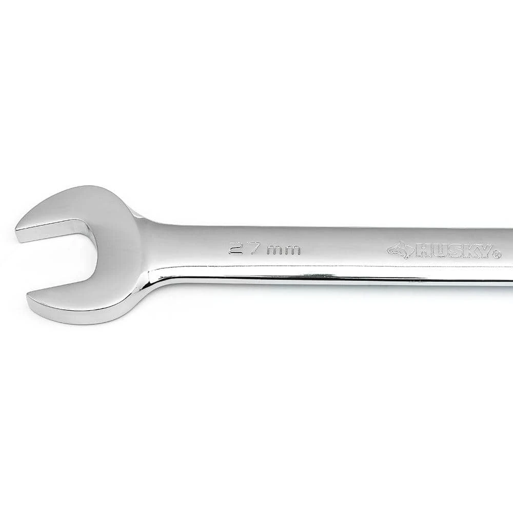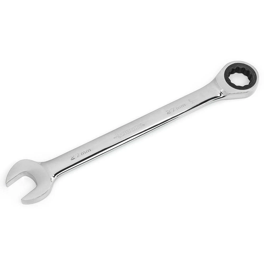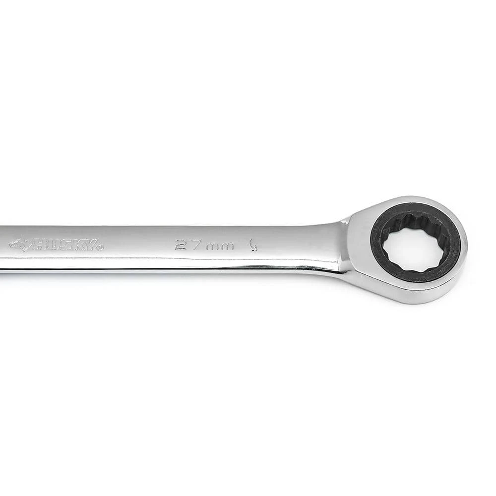 Husky’s ratcheting combination wrenches feature a 12-point, 72-tooth ratcheting box end that needs only 5ยฐ to engage fasteners. Each wrench is manufactured from chrome alloy steel and heat treated for added strength and wear protection; providing durability for a lifetime of hard use. Their polished chrome finish resists rust and corrosion and easily wipes clean of oil and dirt. Both the open and box end features chamfered lead-ins for quick and easy placement onto fasteners every time.