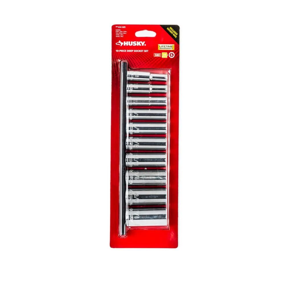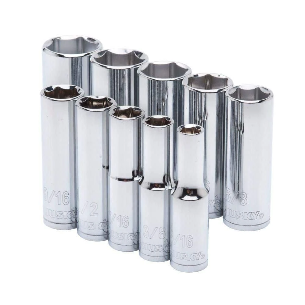 Husky 1/2 in. drive deep sockets are forged from chrome alloy steel and heat treated for outstanding strength and wear protection, providing the durability for a lifetime of hard use. Each socket features chamfered lead-ins for quick and easy placement onto fasteners each and every time. Husky sockets are designed to stand up to the toughest jobs that the weekend DIYer or professional mechanic can throw at them.
