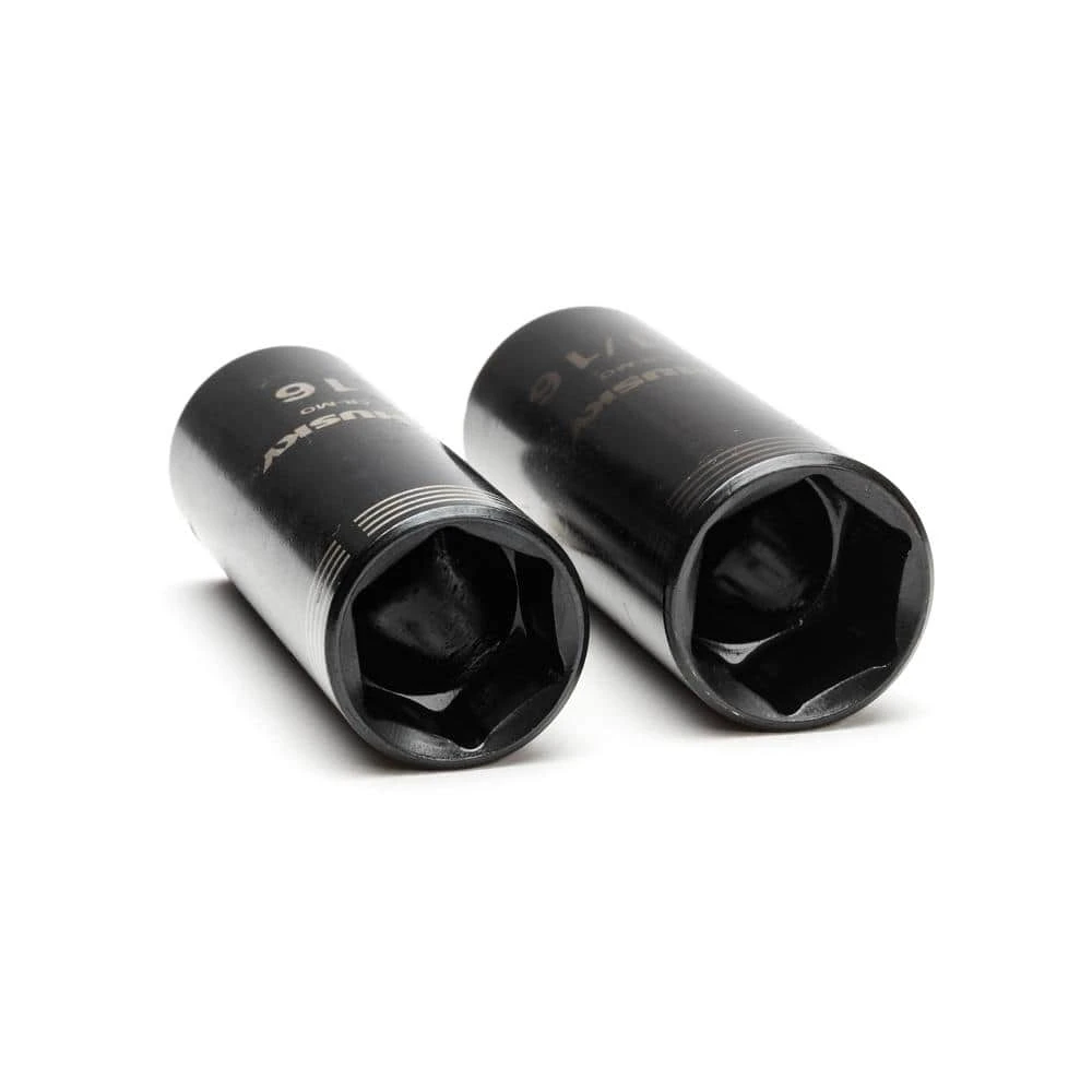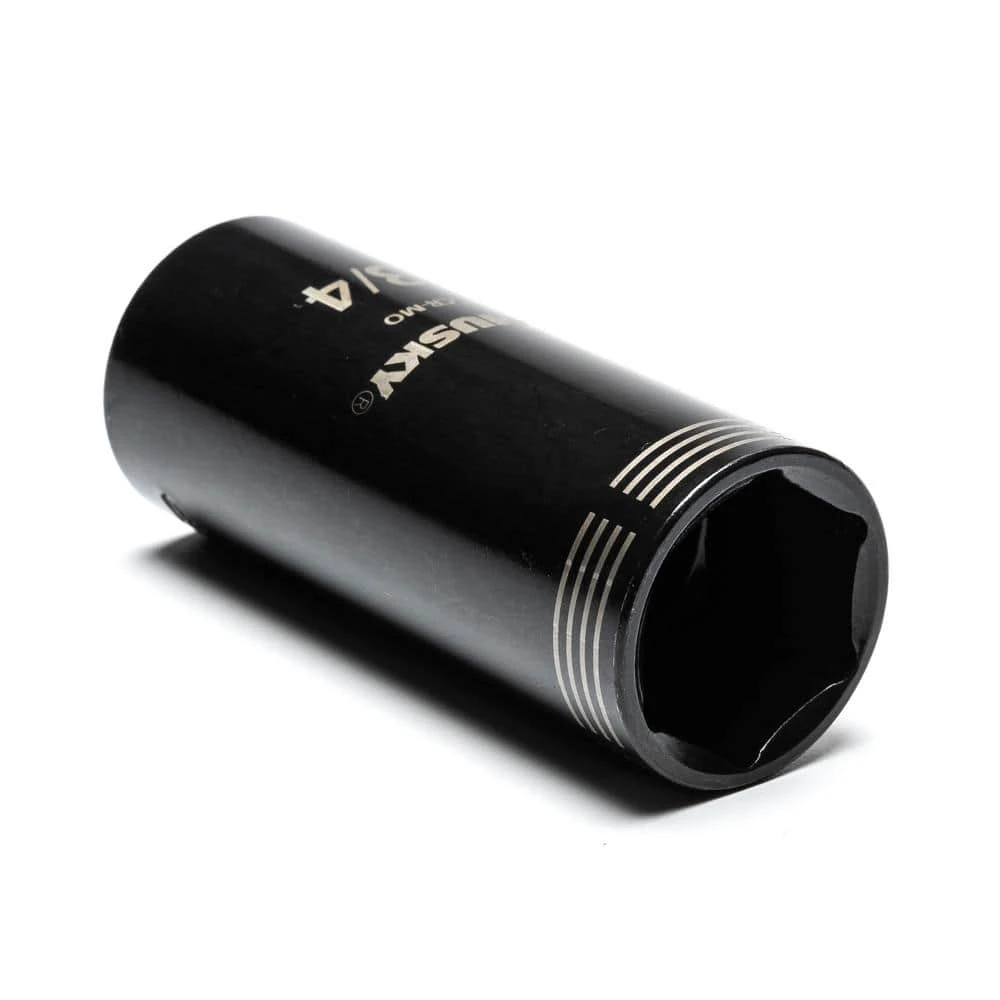 The Husky 3/8 in. drive Thin Wall Impact socket set features a 6-point design. These sockets are up to 2-times stronger than standard chrome sockets and 20% slimmer than impact sockets. This socket set can be used with a standard ratchet or with your cordless impact tools, removing the need for 2 sets of sockets.