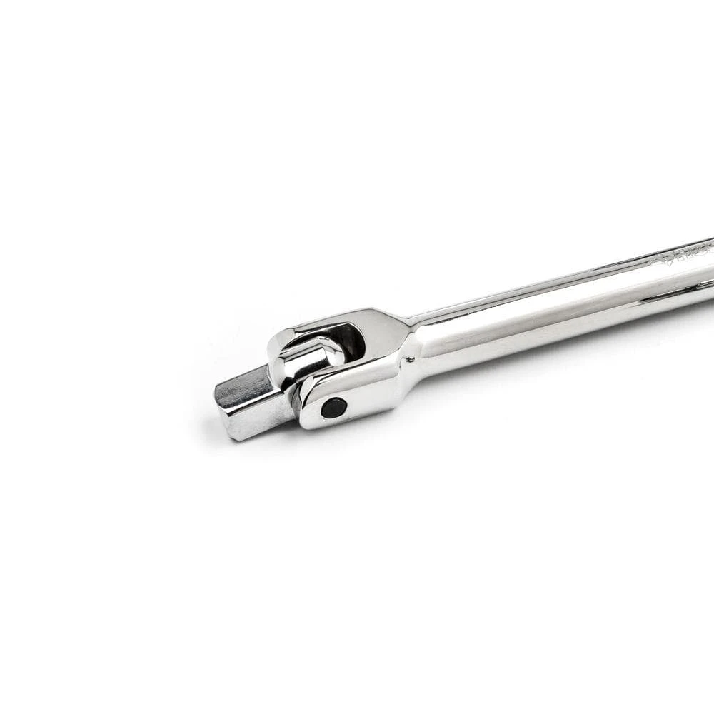 The Husky 3/8 in. Drive 18 in. Breaker Bar features alloy steel construction for strength. The finish provides resistance to corrosion. This breaker bar has a 180ยฐ swivel head and an ergonomically designed handle.
