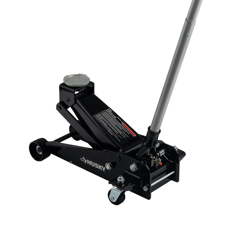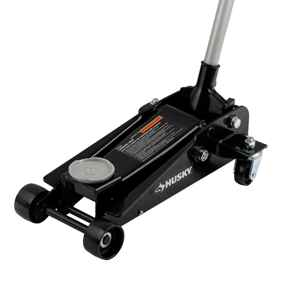 Introducing the powerful Husky 3-Ton Garage Floor Jack, designed to effortlessly lift vehicles weighing up to 6,000 lbs. at a maximum height of 21 inches. Equipped with swivel casters for precise positioning under your vehicle, this floor jack ensures easy and accurate lifting for various automotive tasks. The detachable handle included with the Husky Car Jack Lift allows for convenient storage when not in use, making it a practical addition to your automotive and tool collection. Utilizing hydraulic pressure, this floor jack features a durable steel construction for reliable performance. Enhance your automotive toolkit with the Husky 3-Ton Garage Floor Jack, offering easy positioning and robust lifting capabilities for cars, trucks, and SUVs.