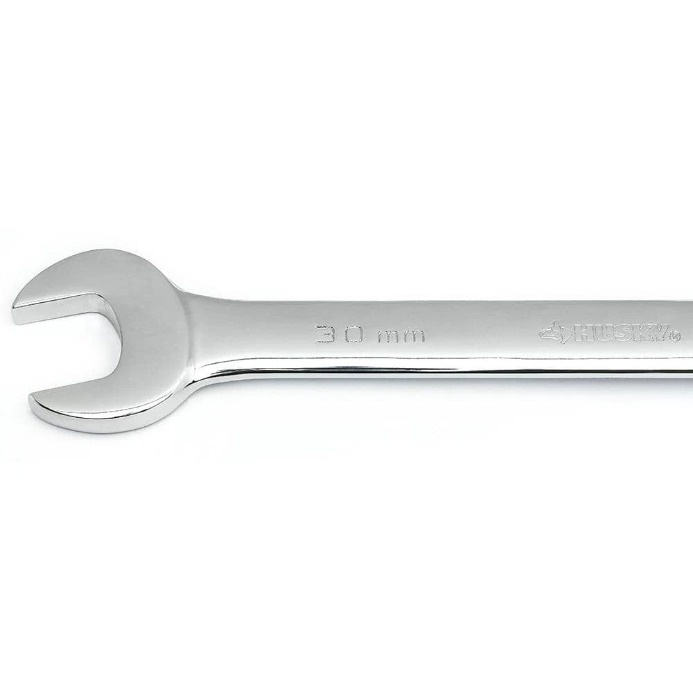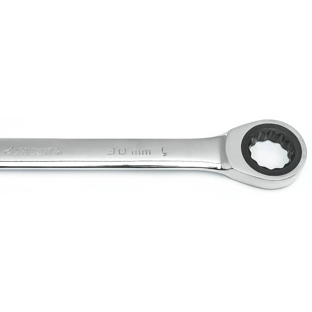 Husky’s ratcheting combination wrenches feature a 12-point, 72-tooth ratcheting box end that needs only 5ยฐ to engage fasteners. Each wrench is manufactured from chrome alloy steel and heat treated for added strength and wear protection; providing durability for a lifetime of hard use. Their polished chrome finish resists rust and corrosion and easily wipes clean of oil and dirt. Both the open and box end features chamfered lead-ins for quick and easy placement onto fasteners every time.