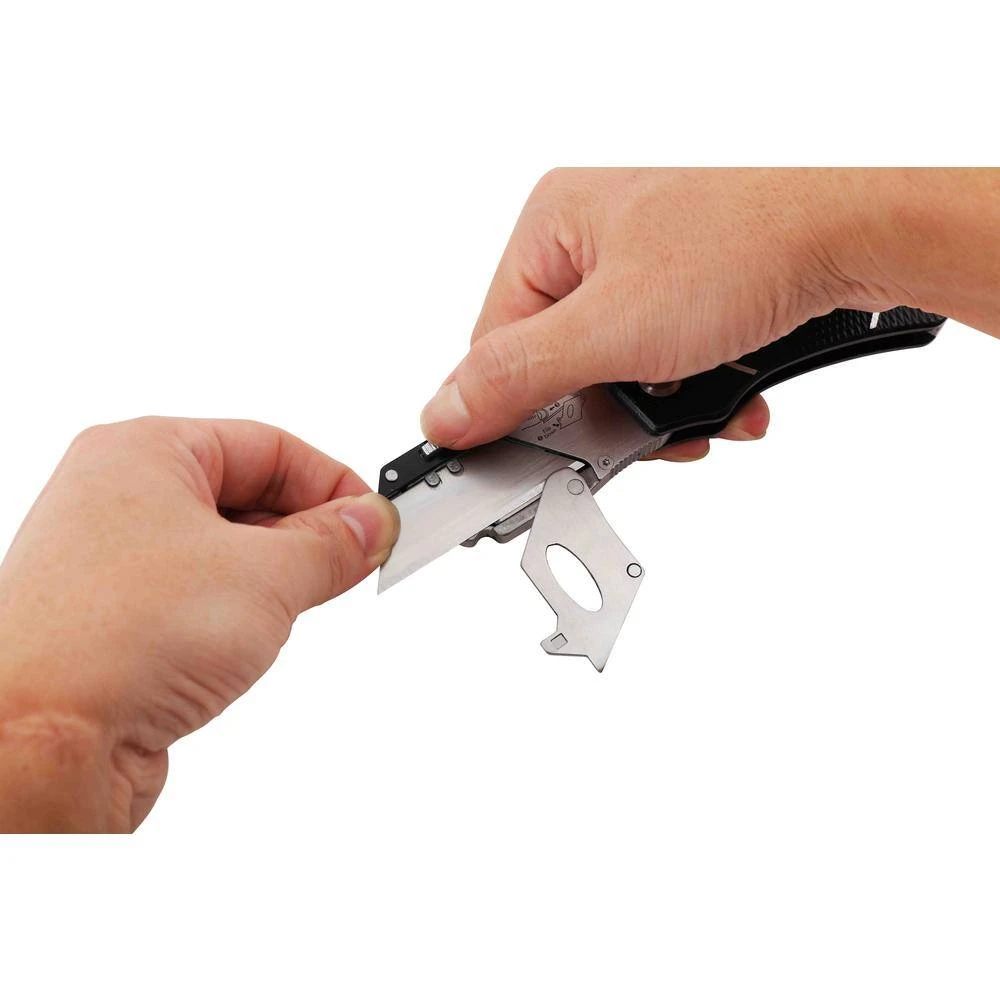The Husky Folding Retractable Lock-Back Utility Knife is designed to offer the convenience of a retractable knife. It features the safety of a folding lock back knife. This knife features a quick-change blade mechanism that accepts standard size utility blades. The handle is made of lightweight, durable aluminum for strength and the convenient folding design makes it easy for a user to safely store the knife in their pocket. This knife is great for use at home, on the job or outdoors.