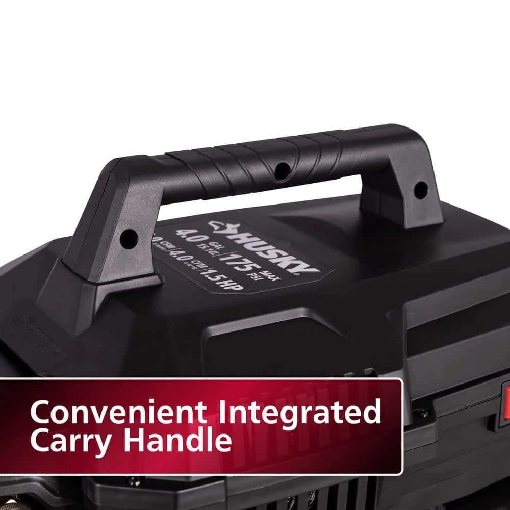- Powerful 1.5 HP Motor, 175 PSI: Drives the 4-gallon tank, delivering 175 PSI for heavy-duty applications with robust power to tackle a wide range of challenging tasks on any jobsite with consistent strength.