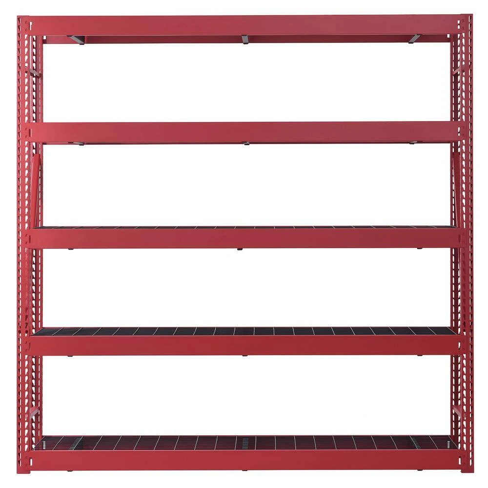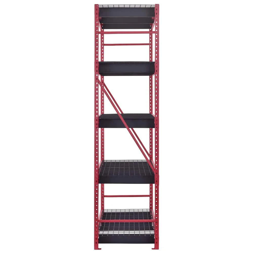 Husky’s Extra Large Welded Frame Shelving Unit measures 90 in. H x 90 in. W x 24 in. D making it perfect for organizing your garage or workshop. The 5-adjustable black wire shelves provide ample storage space to accommodate a variety of heavy items. This unit is constructed with steel in a textured red finish for durability and strength.