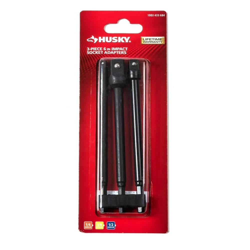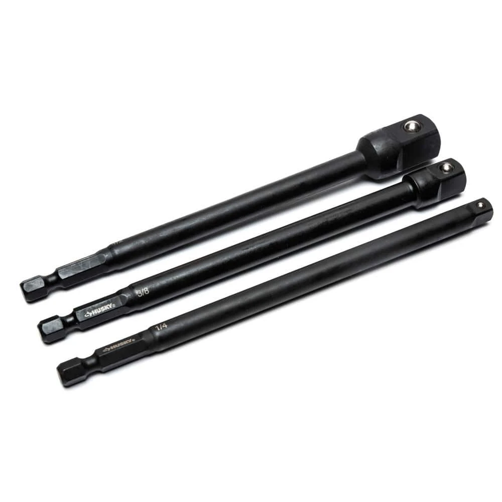 The Husky Impact Socket Adapter Set gives you greater reach and versatility while working with your impact driver. The 3-piece set includes 1/4