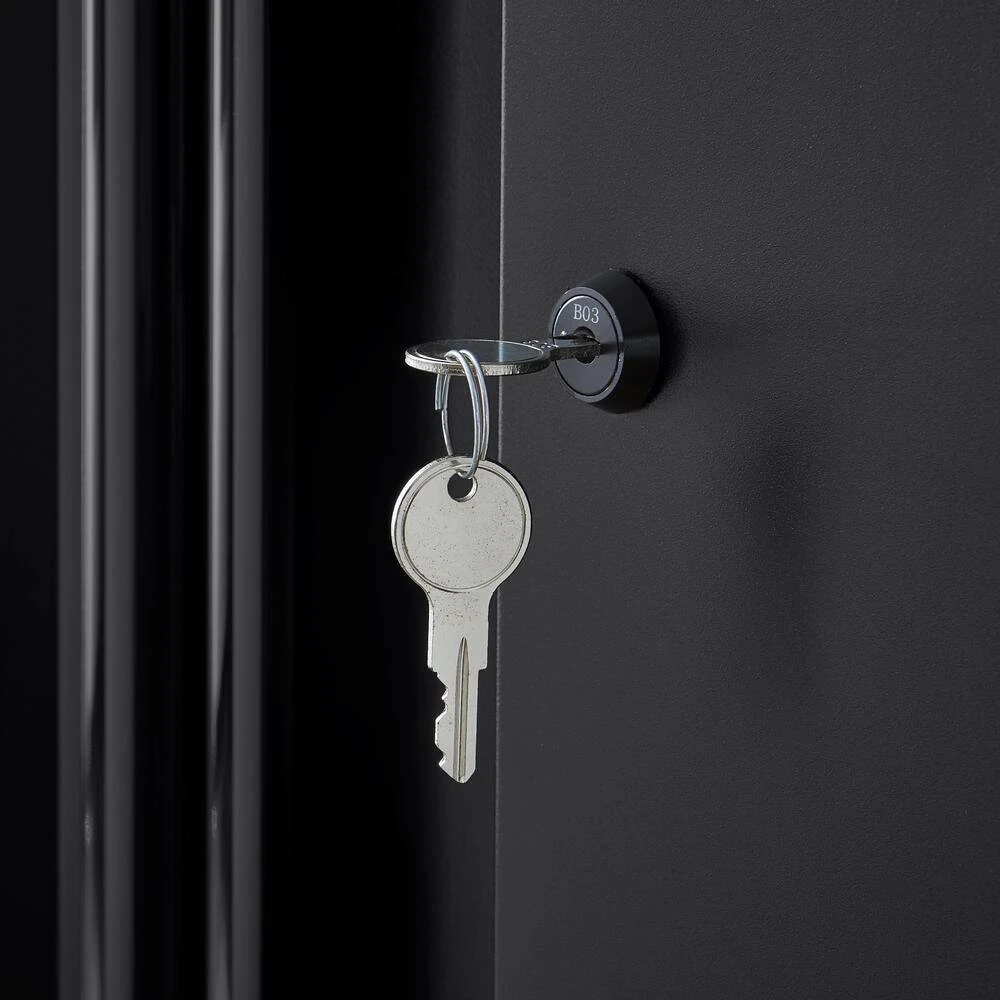 - Tall locker cabinet doors also feature an integrated pegboard for additional storage and the doors open 180ยฐ for complete access to the locker’s contents, the bottom of the locker has a kick plate that prevents screws or small parts from rolling under and getting lost and the bottom shelf has an adjustable lip that lifts up to form a basket, keeping balls or other gear from rolling away