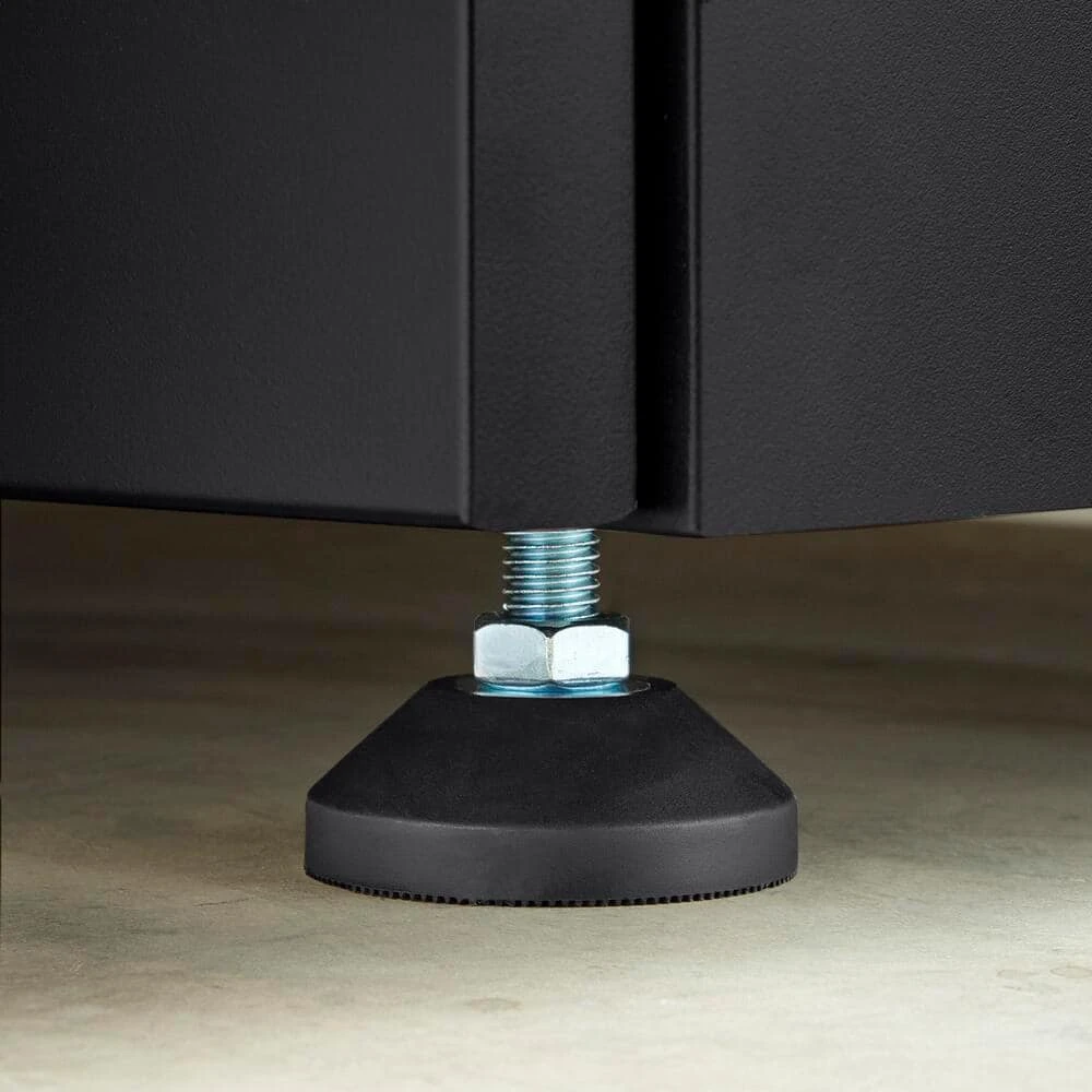 The Husky Heavy Duty Welded Garage Cabinets are built tough for any project. They’re made with rugged 20-Gauge steel and come with Husky’s Lifetime Warranty, so you know they’re built to last. The cabinets come pre-assembled and ready to install – just mount the self-leveling support beam to the wall and then hang wall cabinets on it. The cabinets also all have innovative features that make your work easier and more organized. The tall locker cabinets have cord grommets, 3-way locks, adjustable shelves, an adjustable drawer, and feet that you can level from the inside, even after the cabinet is installed. The wall cabinets also lock and feature adjustable shelves. The base cabinets can easily store and organize your gear and include a solid rubber wood top for extra workspace when needed. The whole set is covered in a black matte powder-coating, which provides a sleek look and helps protect against scratches and everyday wear and tear. The Husky Heavy Duty Welded Garage Cabinet are strong, smart, and perfect for any project.