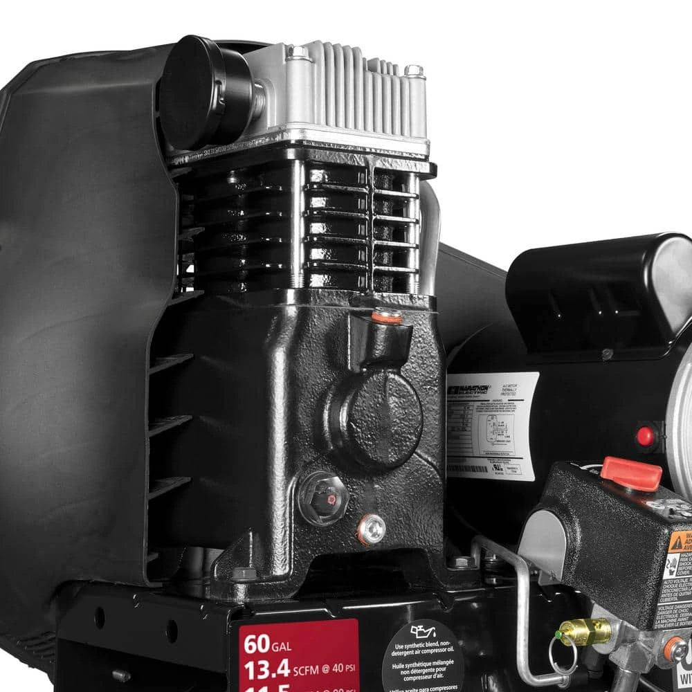 - Large capacity, 60 Gal. ASME tank at 175 maximum psi, with a large 3/4 in air outlet port, provides more air for longer run times for on air tools such as ratchets, impacts, spray guns, hammers, etc.