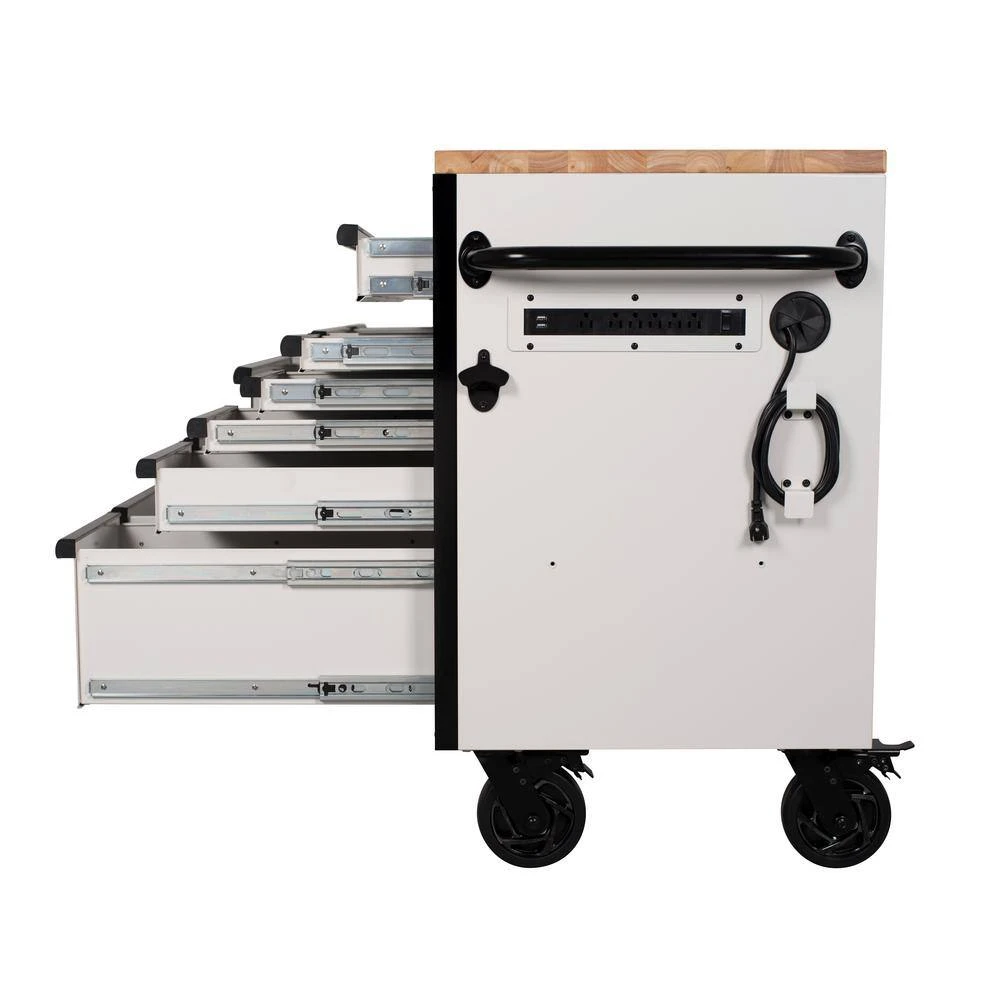 Built for its functional workspace and large storage capacity, the Husky 61 in. W/24 in. D 15-drawer mobile workbench is the perfect combination for your tool storage system. The Husky 290-piece 1/4 in., 3/8 in. and 1/2 in. drive mechanics tool set offers a comprehensive selection of tools for the professional or DIY mechanics workshop. This mobile work center has large, 6 in. x 2 in. casters and a steel tubular side handle, which allow you to easily move it, even when fully loaded. Each drawer is equipped with 120 lbs. rated ball bearing slides. The top long drawer and 2 deep bottom drawers have double sets of 100 lbs. rated soft closing slides to enable you to store your heavier bulk items. It is constructed with heavy 19-gauge steel and is strong enough to support 3800 lbs. and has 24,187 cu. in. storage capacity. The 1 in. thick solid wood top is sealed with a protective coating to protect it from the elements. The wide variety of standard and deep sockets along with the assortment of combination wrenches and bit sockets will allow you to tackle any fastening or repair project. This Husky 290-piece tool set will provide the novice or professional with a huge assortment of durable and reliable tools to get the job done. This set comes packed into portable EVA foam storage trays to keep your tools organized inside your toolbox.