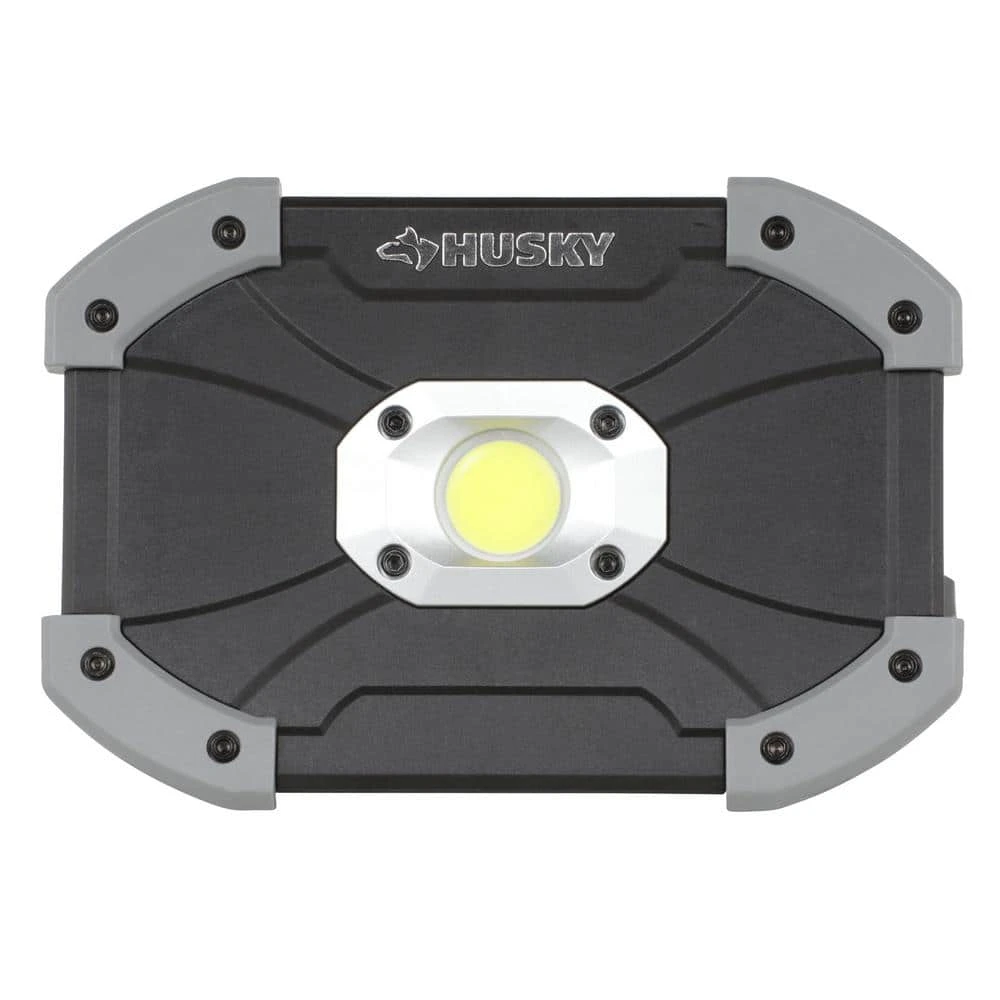 This Husky 700 Lumens Utility LED light features a unique design with durable plastic construction. It’s equipped with super bright LED lighting, offering up to 700 Lumens, 4 hours of run-time and 20 m of beam throw. Its bright illumination and light weight, make this a perfect light to have for multiple uses such as: emergencies, camping, household and automotive. Featured is a 180° adjustable, foldable handle that allows for easy carry or positioning at the perfect angle. The battery compartiment is easy to open and stores 6 AA alkaline batteries, included.