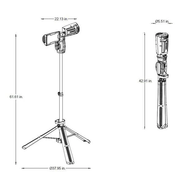 The Husky LED portable corded work light has the high output of 7000 Lumens. It is perfect for any home or job site project. With it’s heavy-duty professional grade die-cast aluminum housing, tripod stand and rotating heads it makes any job easier. When the job is finished, just fold up, wrap the cord up using the built-in cord wrap system and easily fold up.