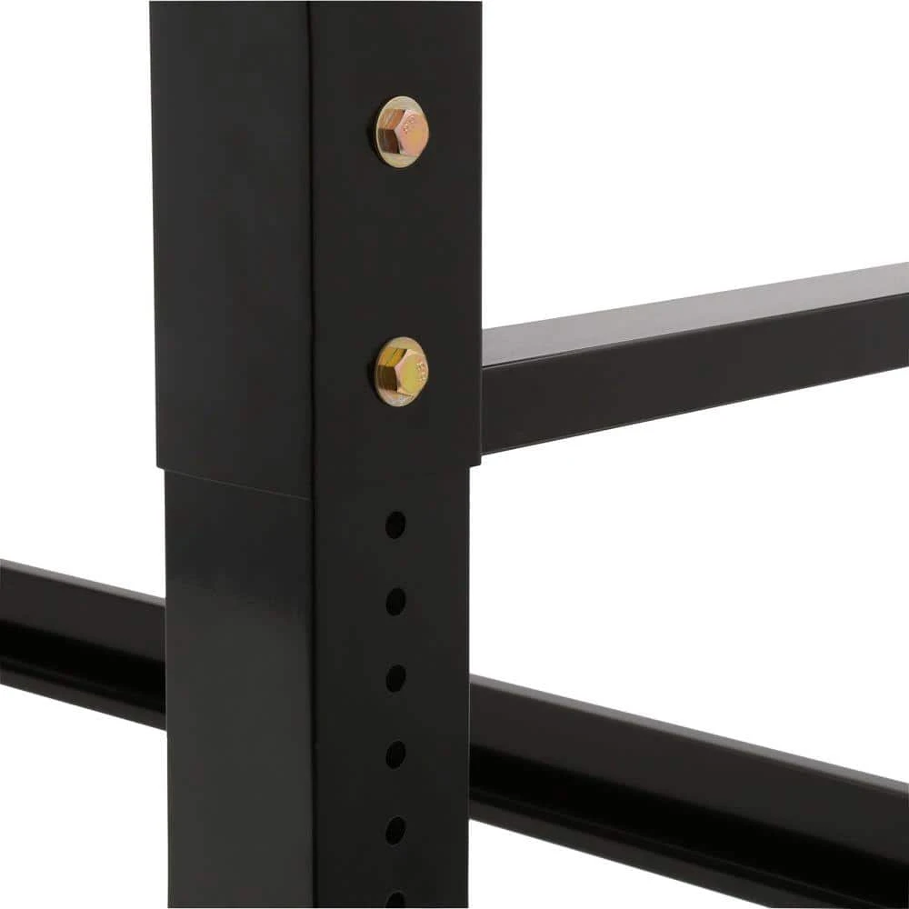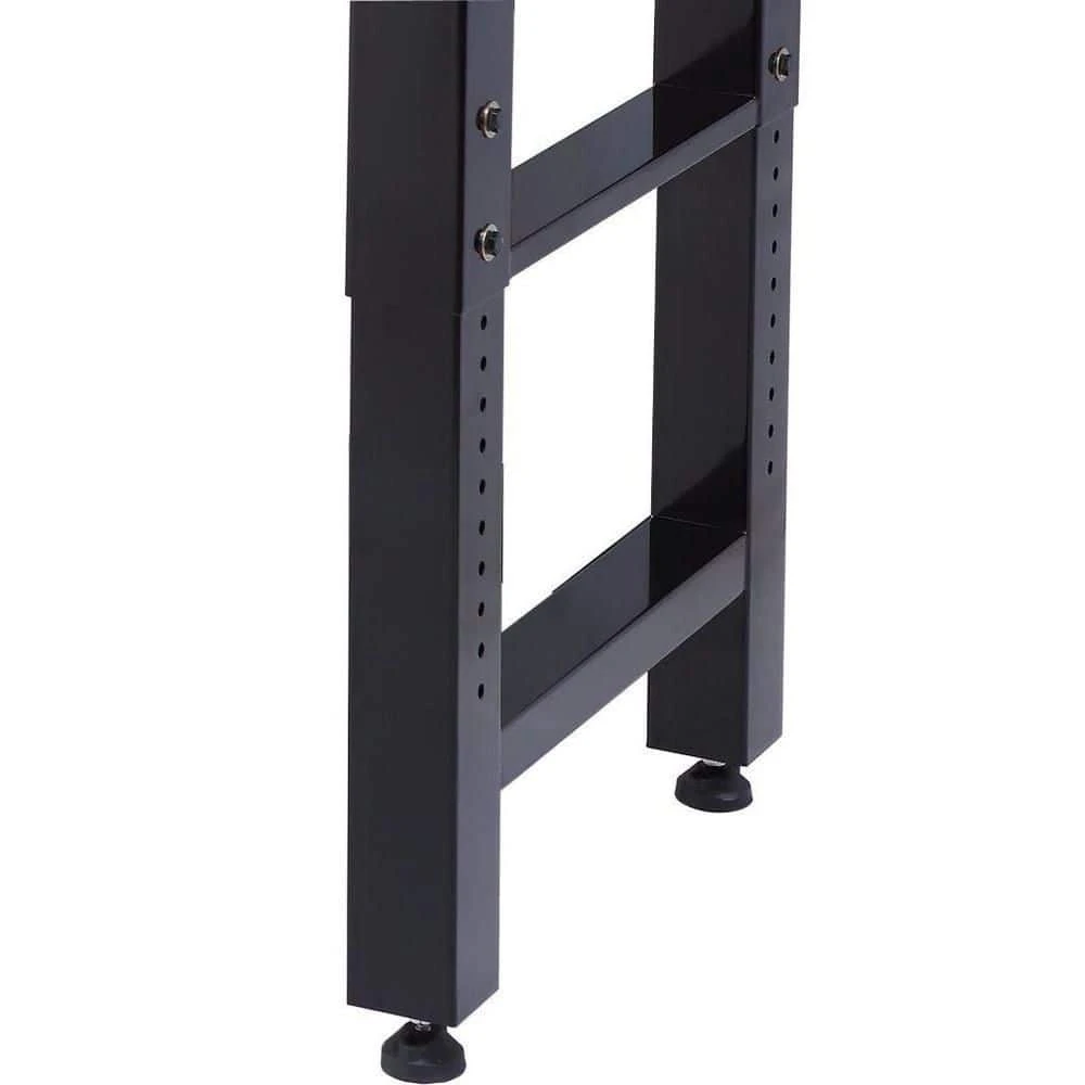 Give yourself more workspace with this 6 ft. Adjustable Height Solid Wood Top Workbench in Black for Ready to Assemble Steel Garage Storage System. Easily place this in your garage to complete projects and tasks. It features a hardwood top for durability. Adjust the height of the workbench to fit your needs.