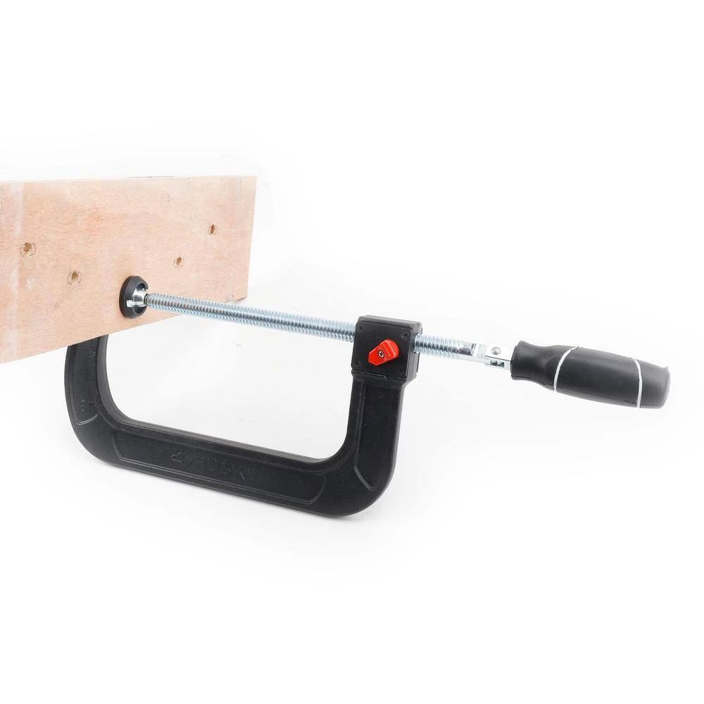 The 8 in. quick release C-Clamp is a new innovative design. It allows the user to clamp faster than standard C-Clamp, easily adjustable clamp opening. Forged steel frame provides more clamping strength and durability.