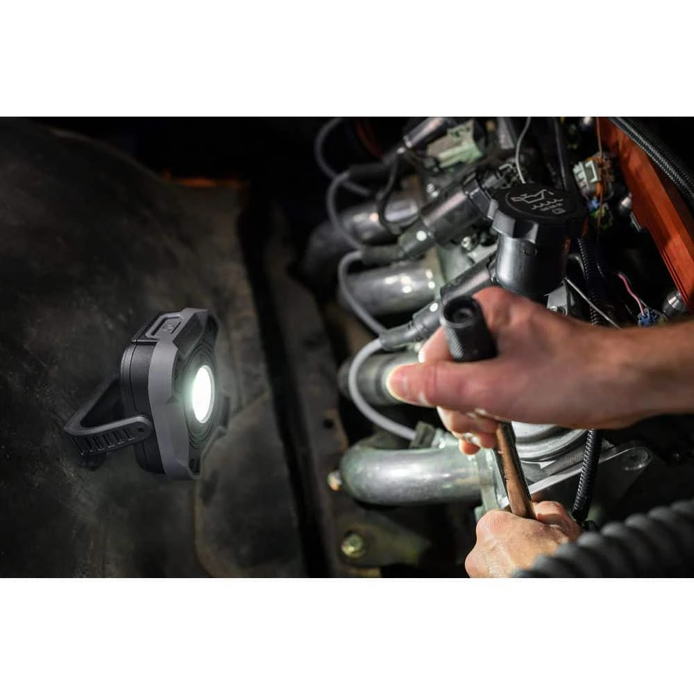 The Husky 800-Lumen Utility LED Light provides extended brightness. Its comes equipped with Hi and Low light modes. Included in the 2-pack are 8 AA alkaline batteries and a retractable stand with handle. The utility light 180ยฐ pivoting handle is also magnetic making it great to use while working on your car. All this backed by the Husky limited lifetime warranty.