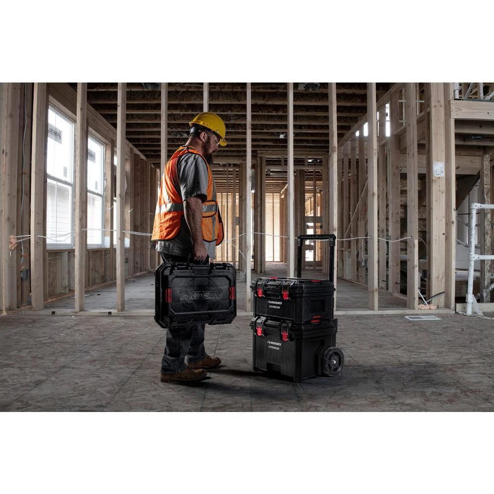 Protect your components against the elements with the Husky 12-inch Waterproof Storage Bin. Constructed from heavy-duty polymer with over-center latches and a silicone O-ring waterproof seal for long-lasting durability. Removable dividers inside the bin allow for customized storage. The Waterproof Storage Bin works for standalone organization and also integrates into Husky Build-Out tool boxes.