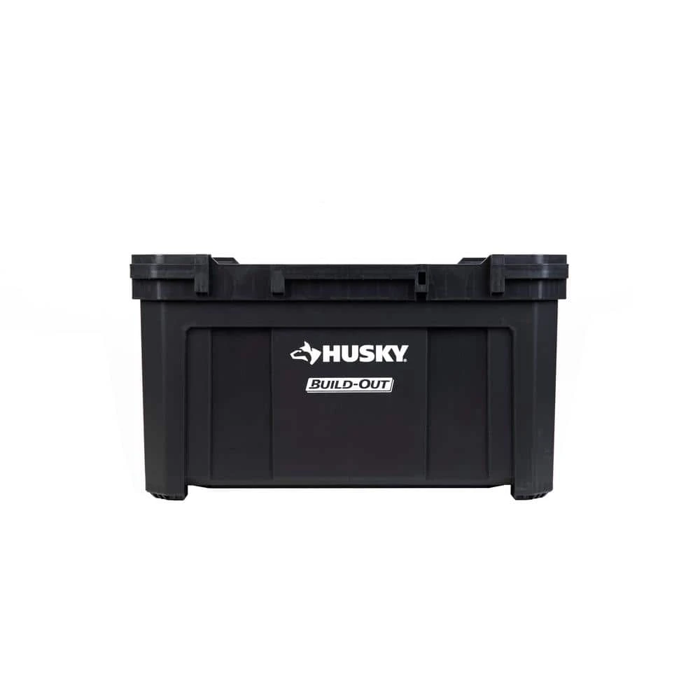 The Husky Build-Out Crate is ideal for bulk storage of larger tools and machinery. The crate features a loading capacity of up to 100 lbs. and impact-resistant construction. No interior dividers or lid. Expand your storage system by connecting hooks and other accessories to the integrated accessory rail. The Husky Build-Out system creates customizable modular storage that gets you and your tools to the job site faster. The system includes tool boxes, organizers, crates, and accessories, all designed to seamlessly secure together in many different configurations.