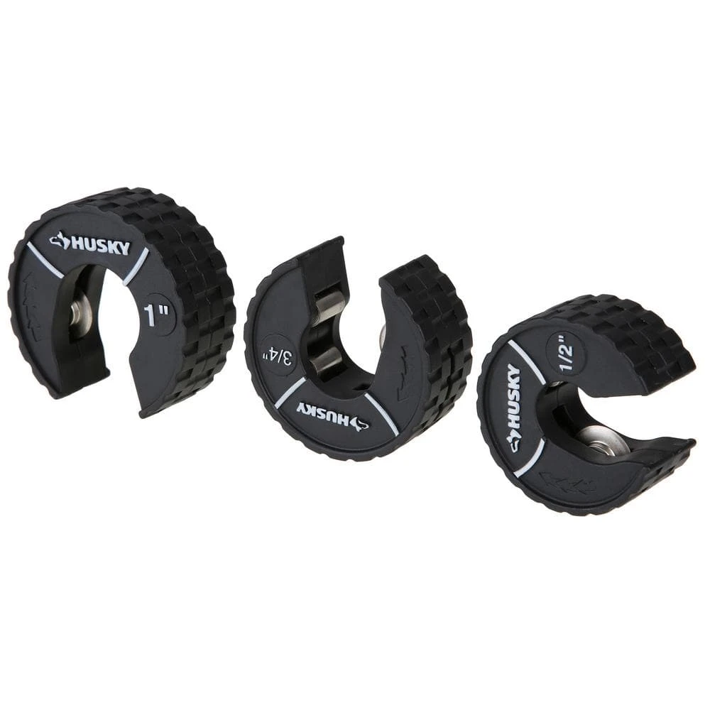 Husky’s 3-Piece Automatic Tube Cutter set makes cutting copper tubes easy and intuitive. The spring-loaded cutter wheel tightens while turning to maintain constant pressure, resulting in cleaner cuts. The hardened steel wheel and lightweight plastic body makes cutting smoother. The set includes 3 Automatic Tube Cutters: 1/2 in., 3/4 in. and 1 in. sizes. Built to last and backed by the Husky lifetime warranty.