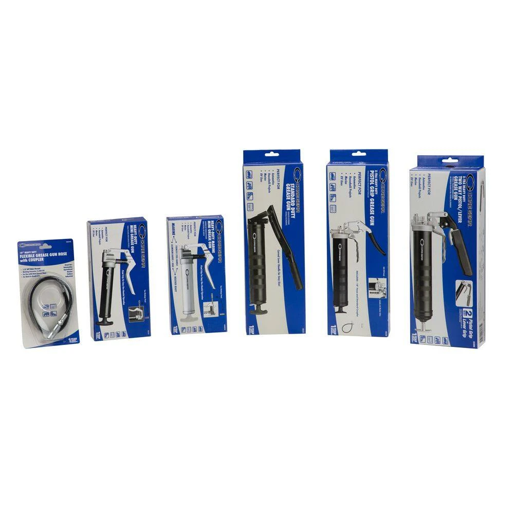 - Includes 6 in. grease pipe, 18 in. flexible hose and coupler