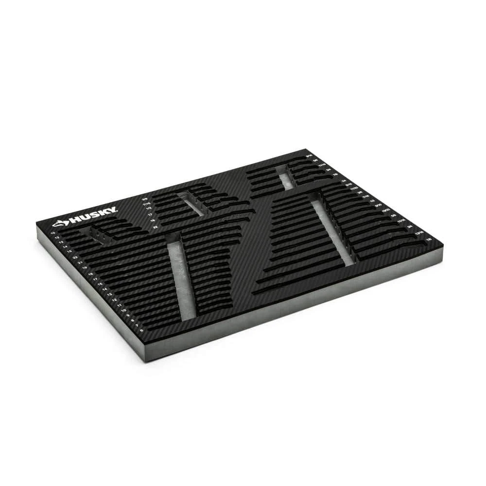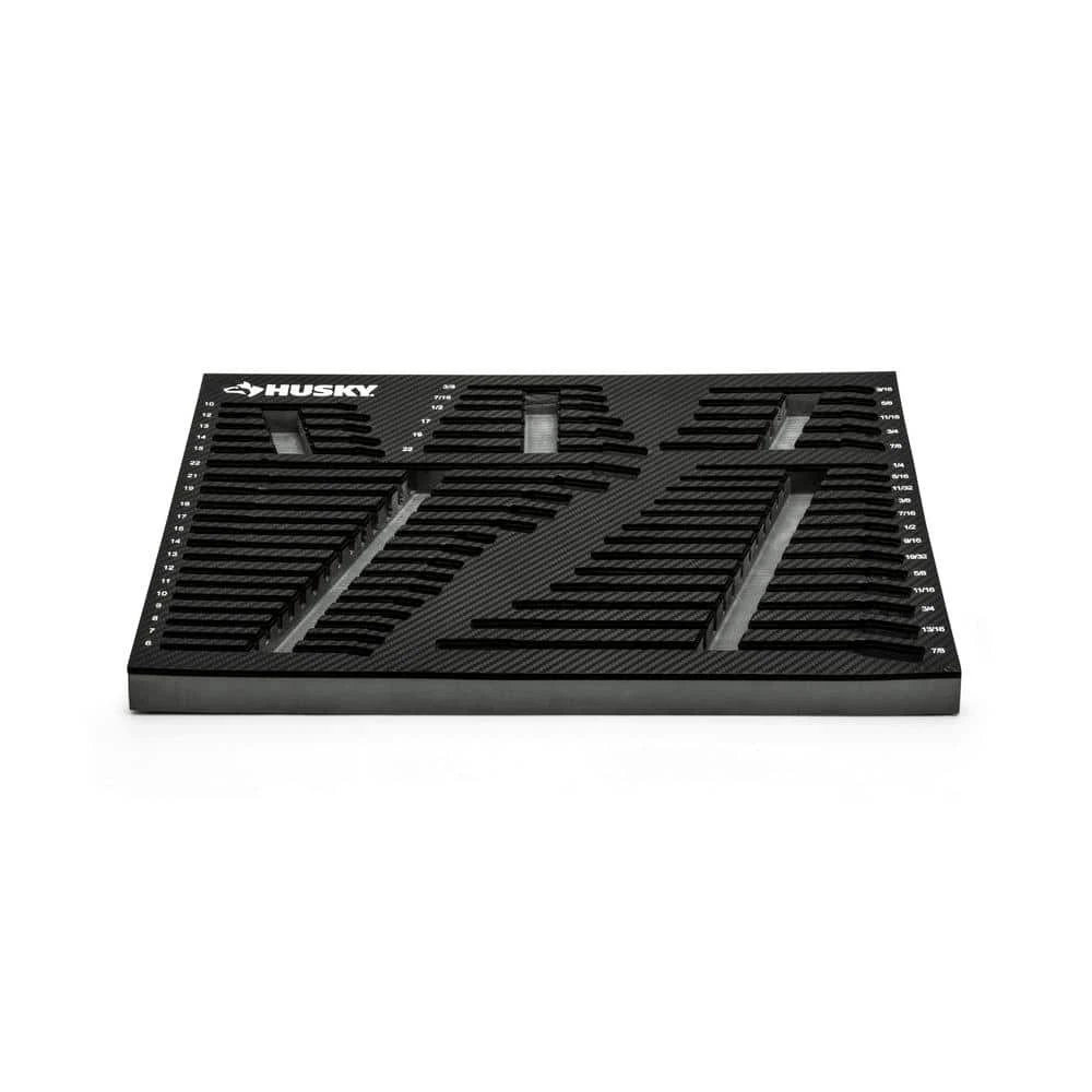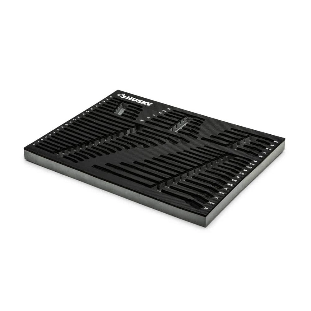 This 44-piece EVA foam storage tray for combination wrenches is a great solution for garage organization needs. Sizes are clearly marked for quick identification so nothing will slow you down. Fit this tray inside your toolbox drawer or anywhere in your shop for structured storage wherever you need it. Pack with 28 standard and 16 stubby Husky Combo Wrenches.