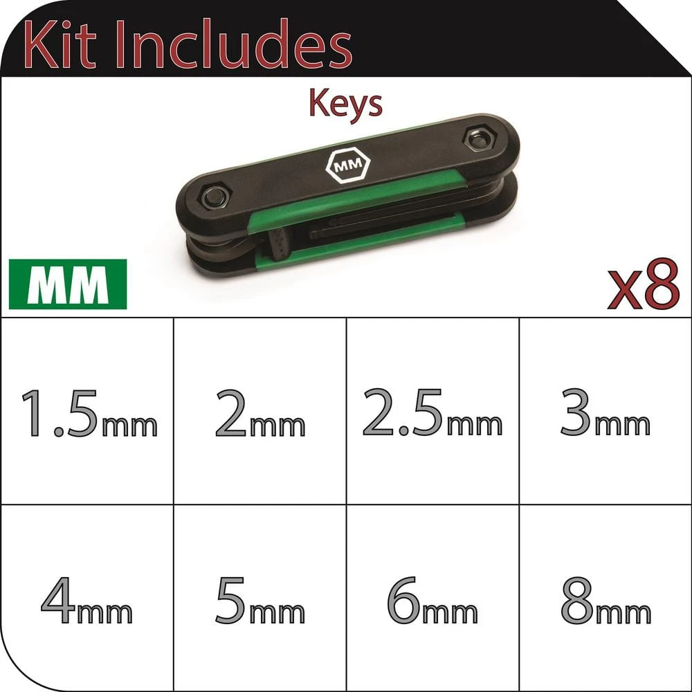 - Set includes 8 metric keys covering sizes 1.5mm, 2mm, 2.5mm, 3mm, 4mm, 5mm, 6mm, and 8mm