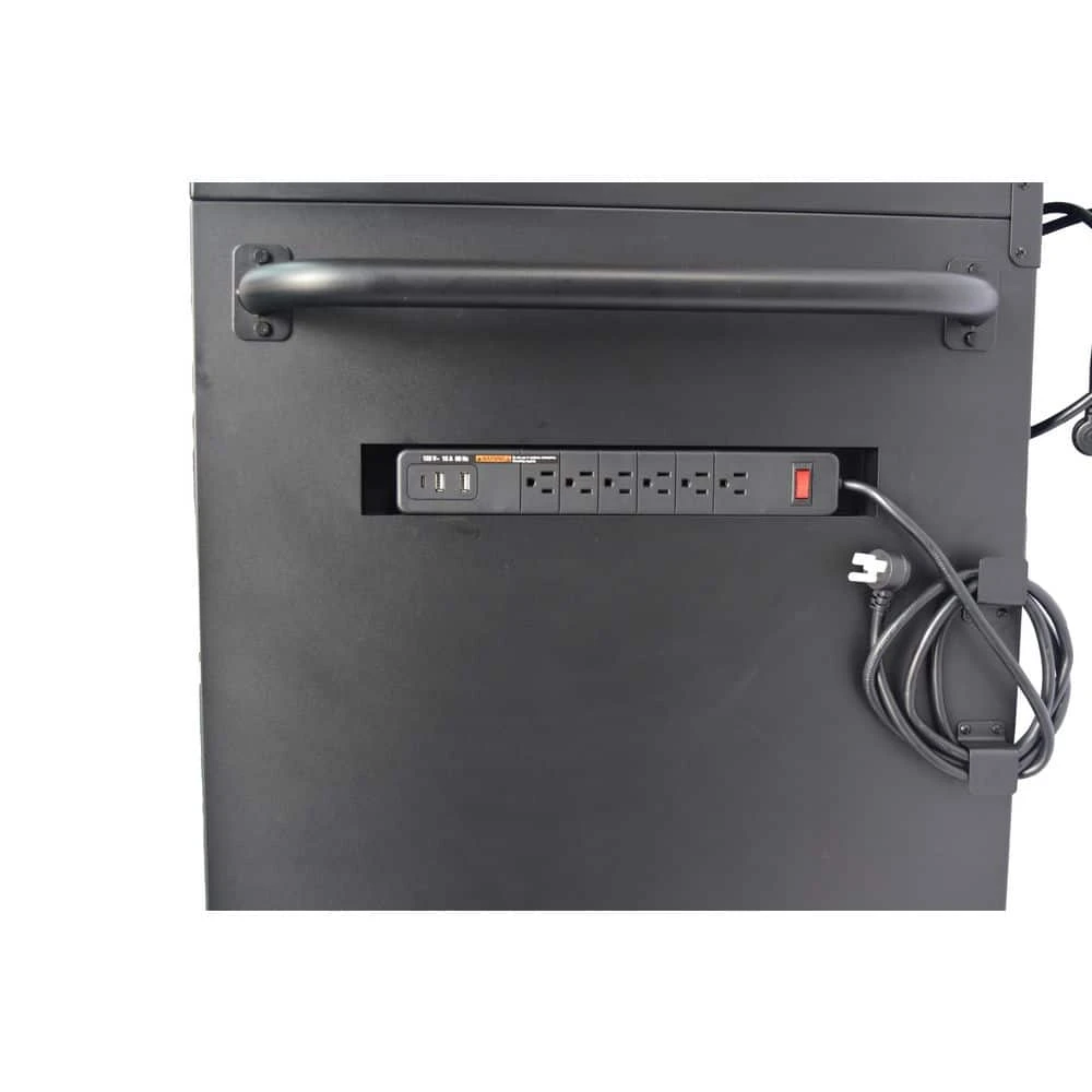 - 2 power strips with 6 outlets 2 USB and 1 USB-C, 1 for chest and 1 for cabinet